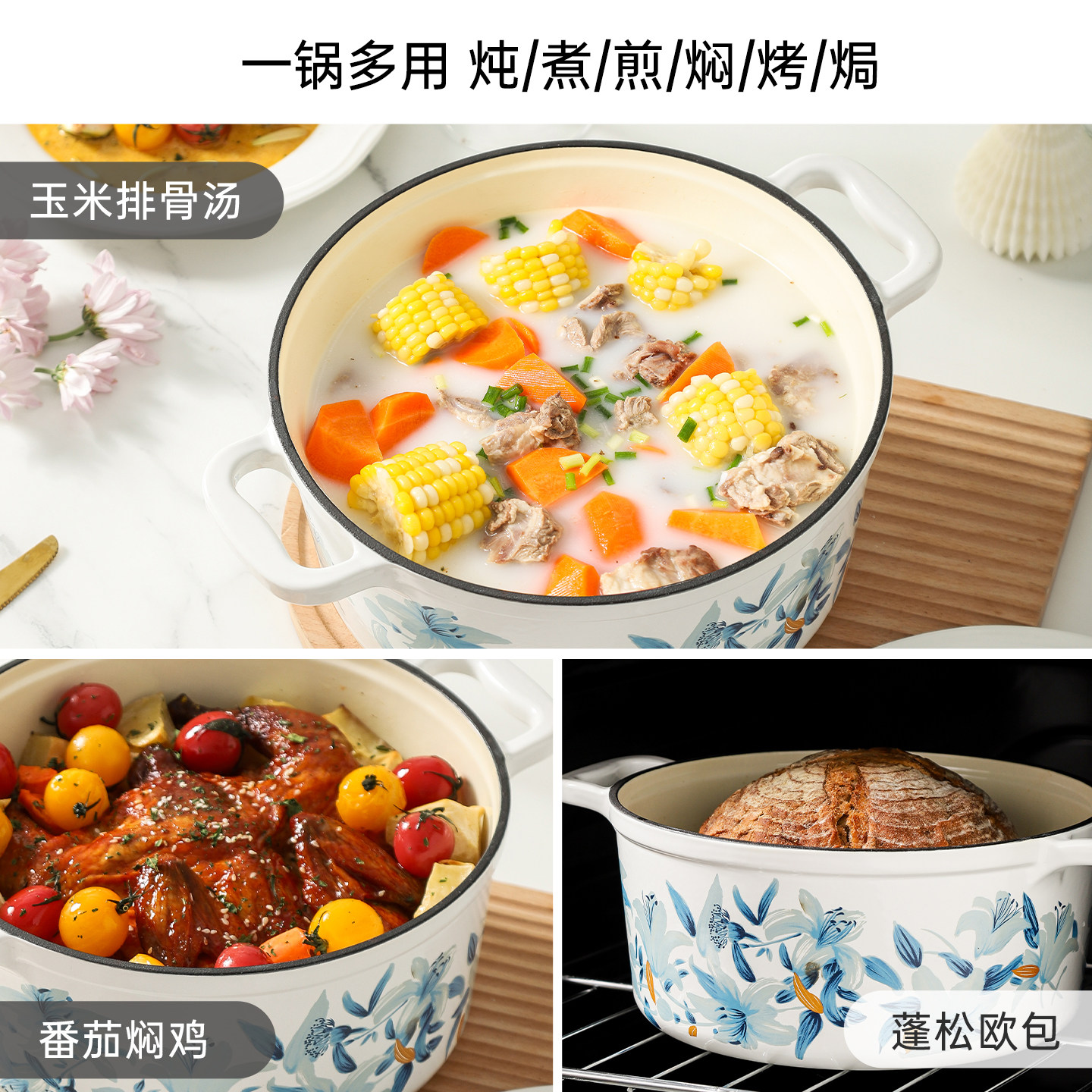 卡罗特珐琅锅铸铁锅家用炖锅砂锅汤锅炖盅煲汤锅不粘锅电磁炉煮锅