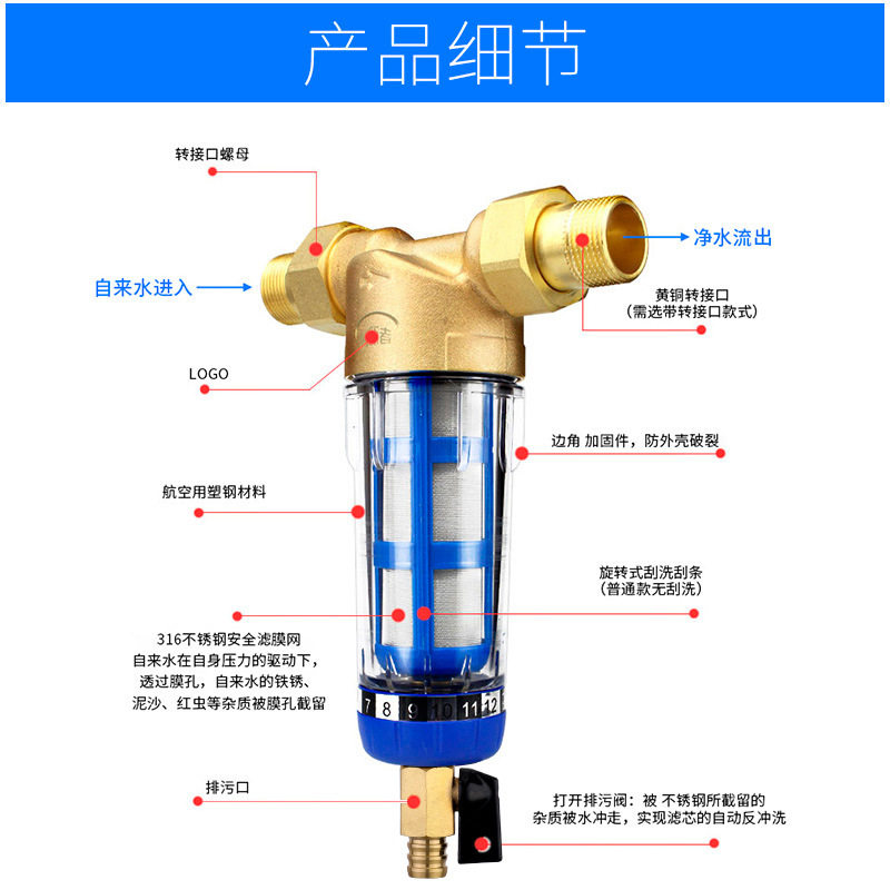前置过滤器自来水龙头净水器家用大流量反冲洗全屋中央管道滤水器