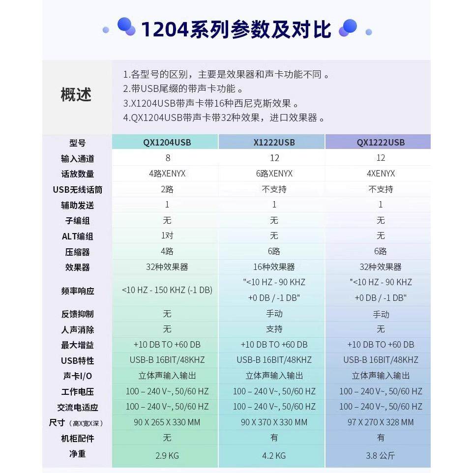 BEHRINGER百灵达QX1204USB 8路调音台会议扩声舞台直播K歌带声卡
