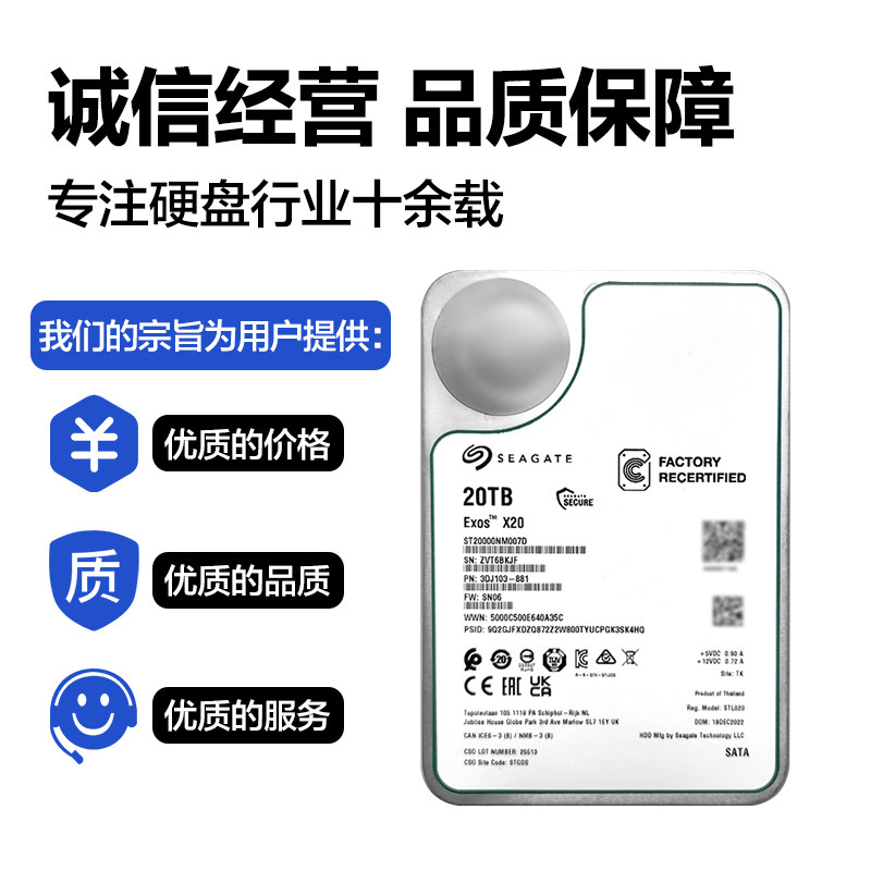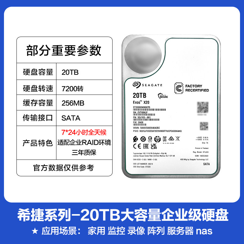 正品希捷ST20000NM007D银河企业级氦气机械硬盘NAS服务器存储20TB
