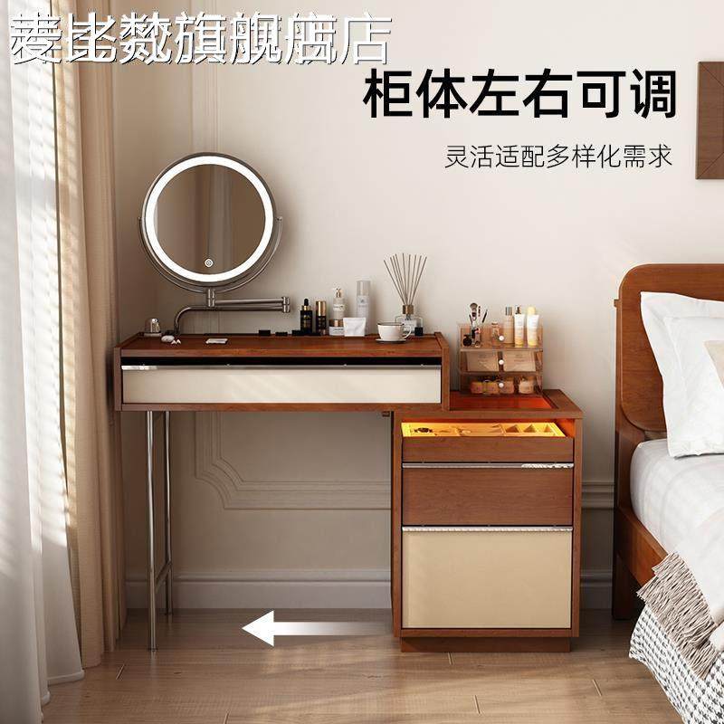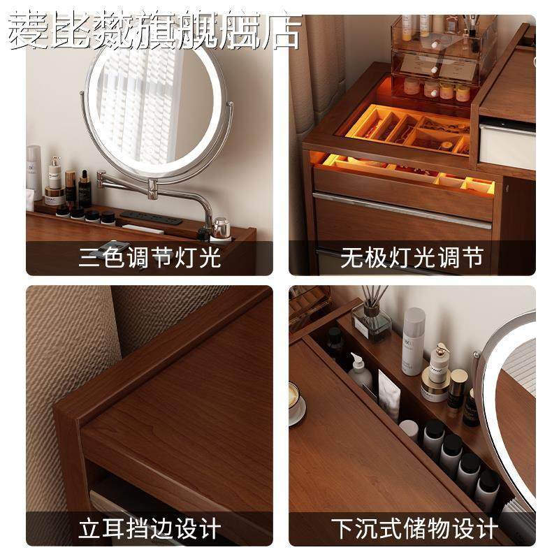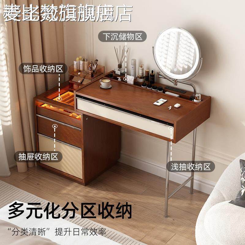 麦比梵中古风实木梳妆台卧室斗柜一体化妆桌2025新款收纳柜化妆台一体桌床笠拉车