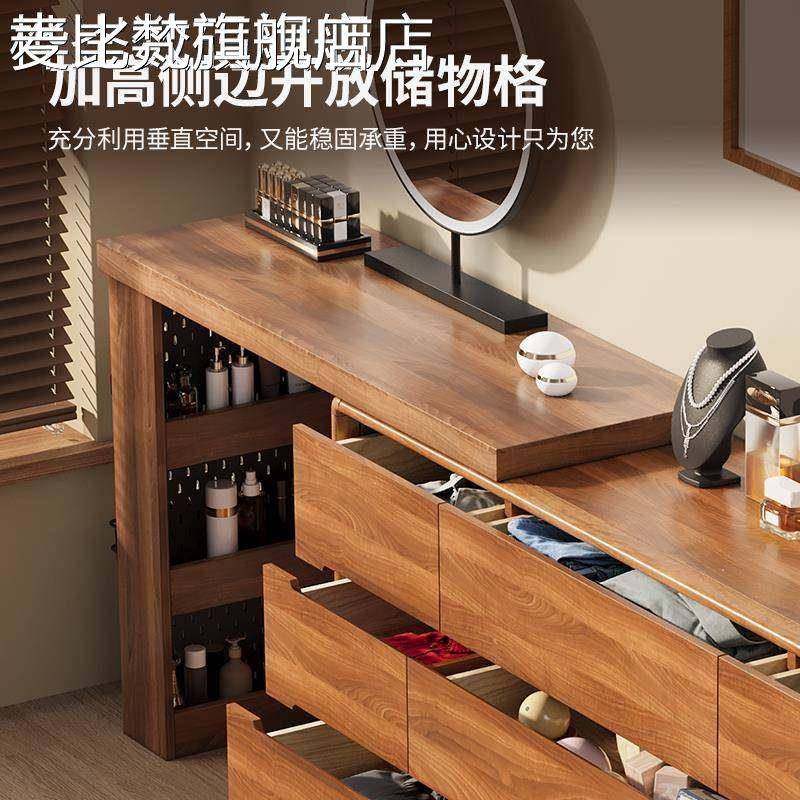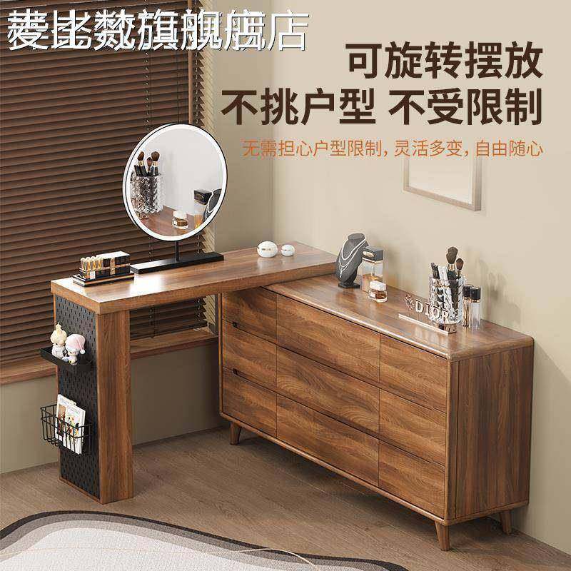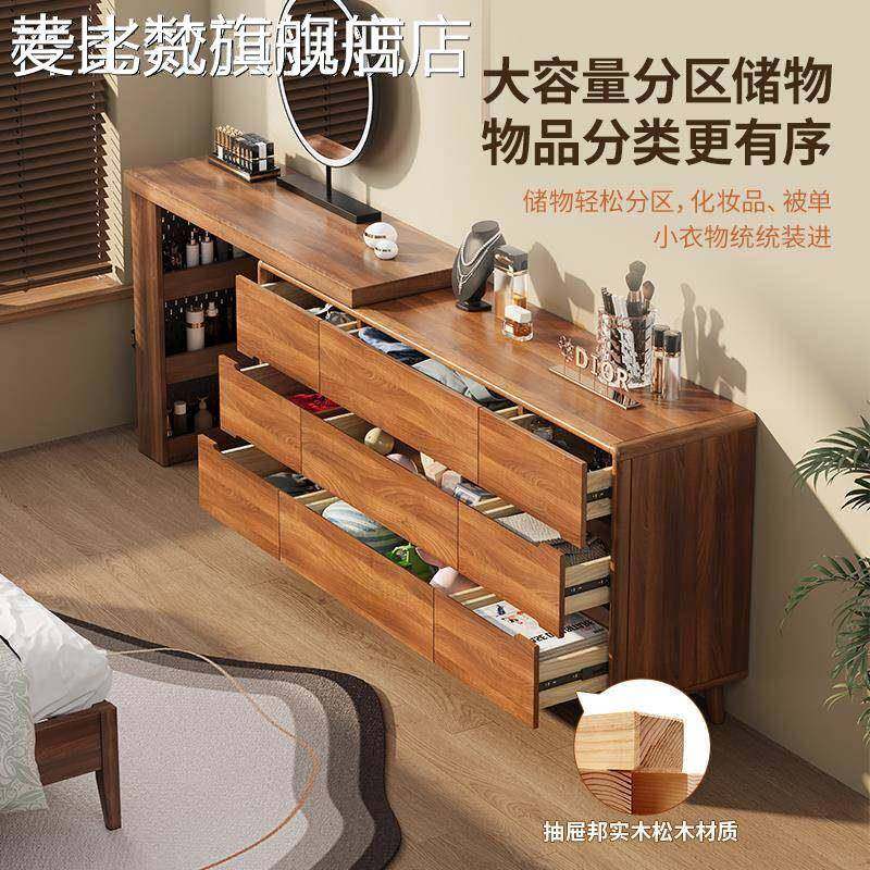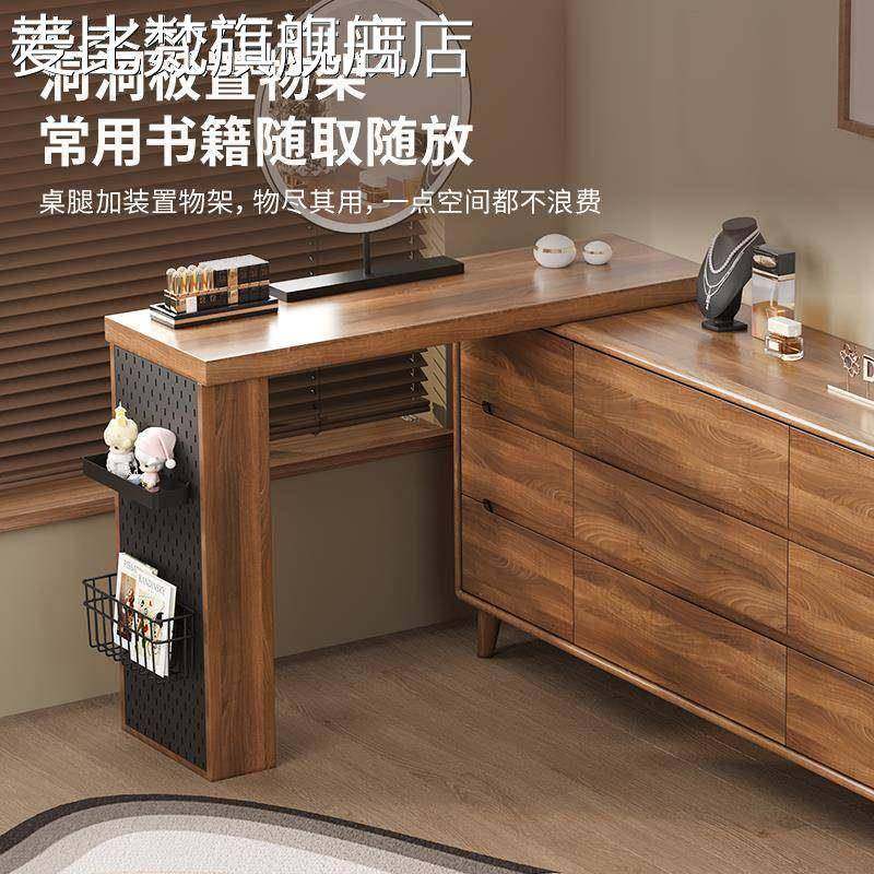 麦比梵梳妆台斗柜一体卧室实木框床尾收纳柜简约现代化妆台转角书桌新款床笠拉车