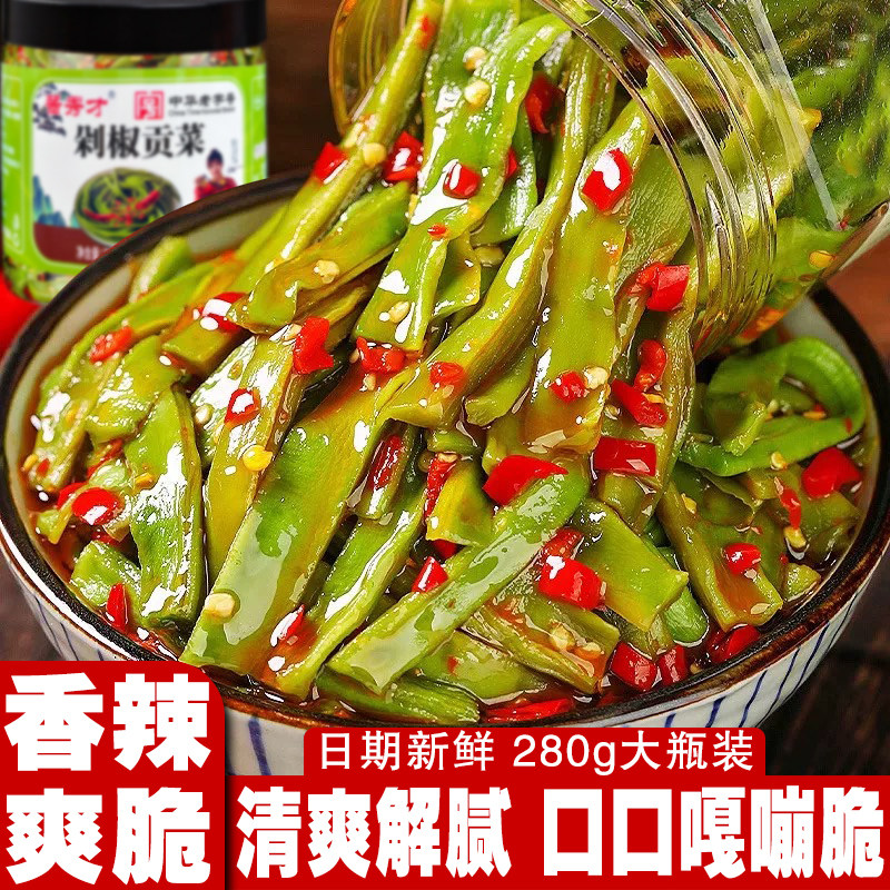 香辣腌制贡菜下饭菜即食咸菜剁椒脆椒贡菜榨菜辣椒酱泡菜拌饭瓶装