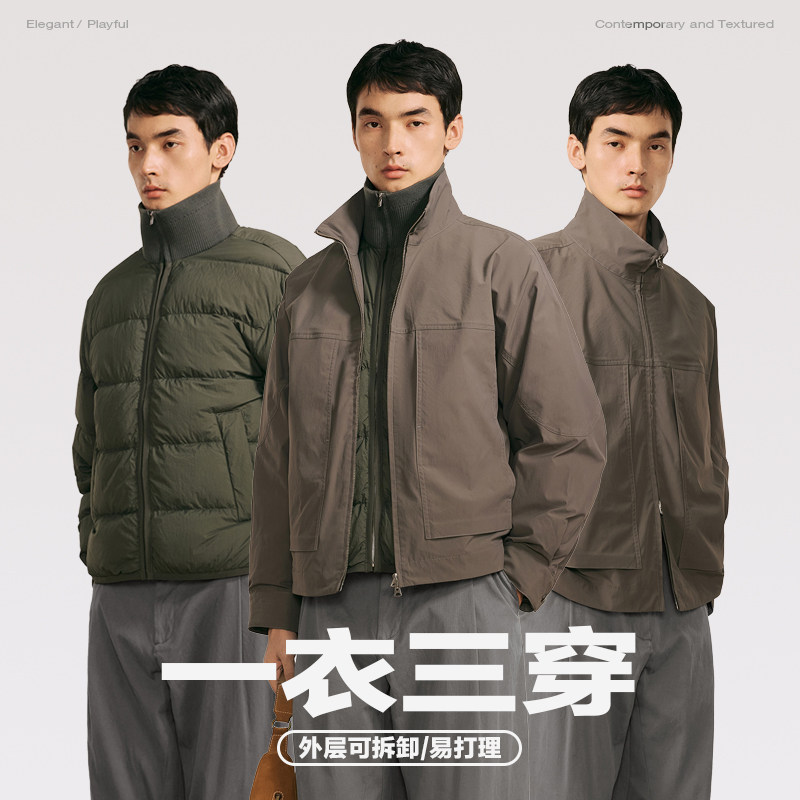 速写男装秋冬新款休闲宽松羽绒服轻薄两件套短款轻暖时尚舒适外套