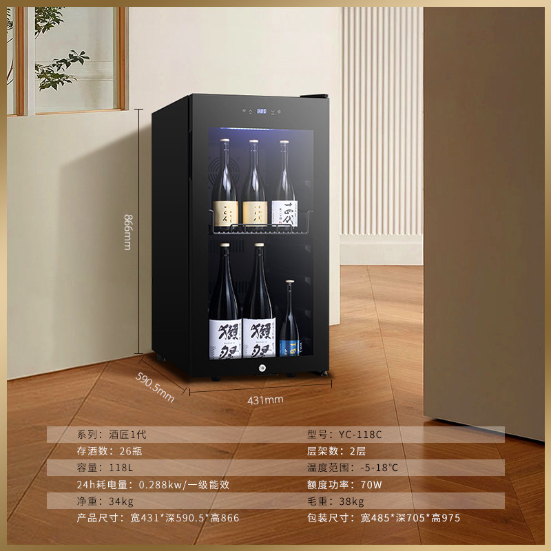 -5℃~18℃广域制冷 LOWE保温玻璃 日系酒