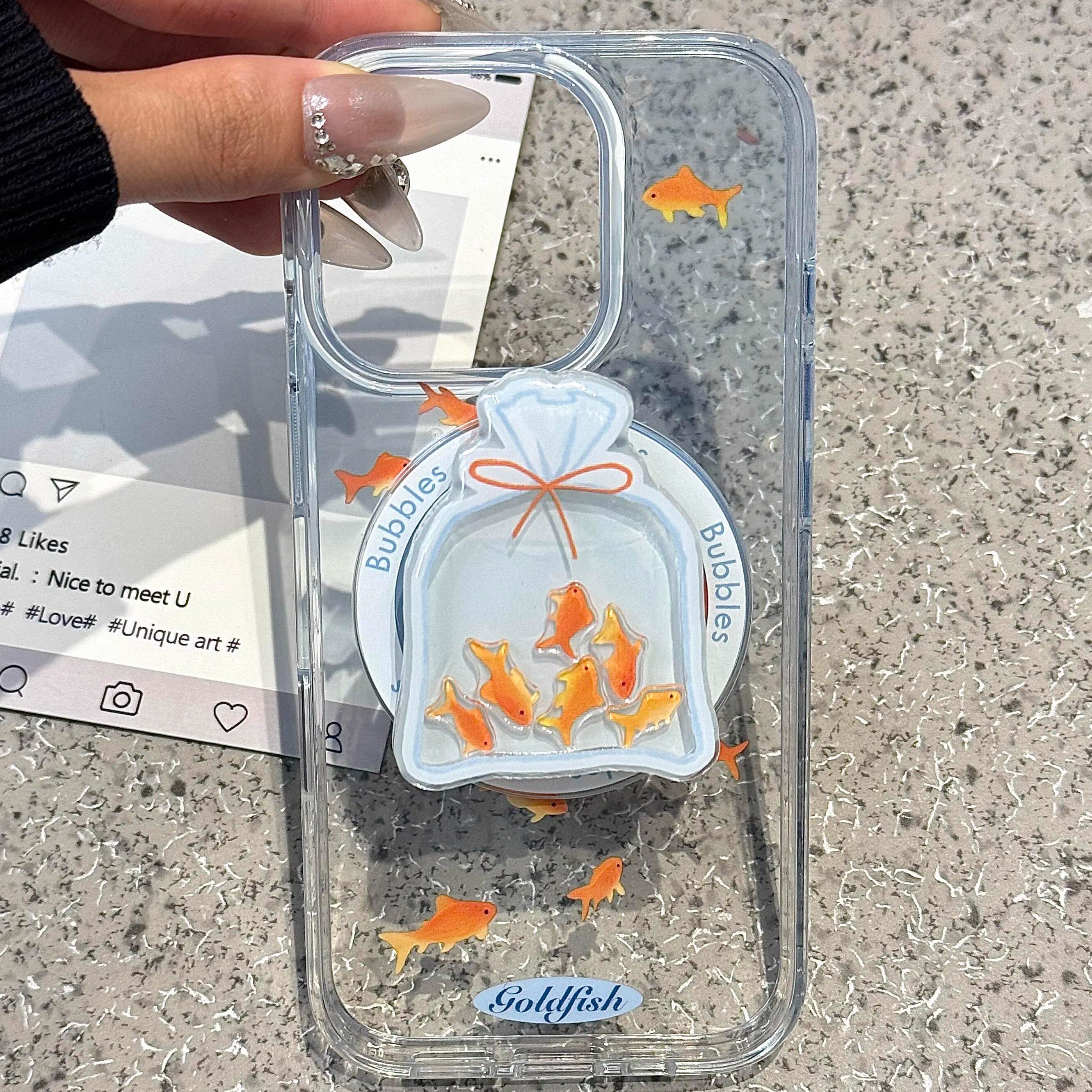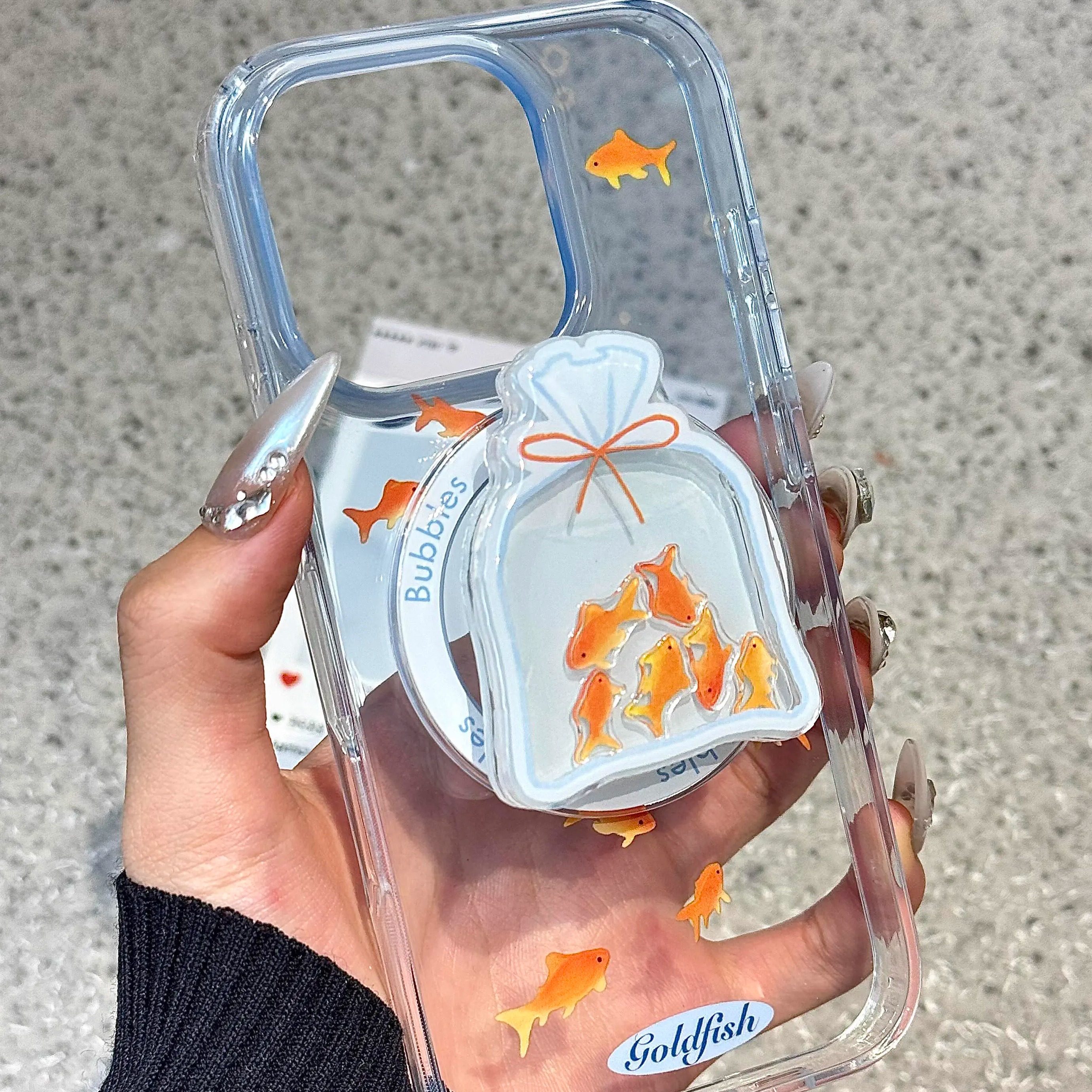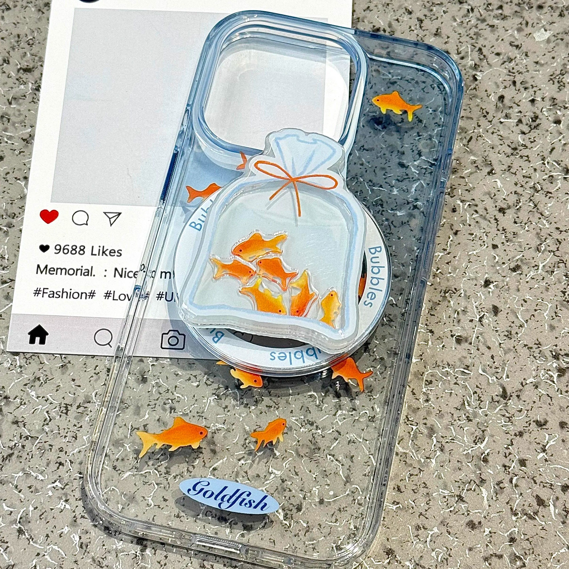 渐变金鱼摇摇乐磁吸支架适用苹果16PROMAX/15PRO手机壳14PRO/13mini大孔镜头XR/iPhone16PRO湖蓝11/XR/876SE