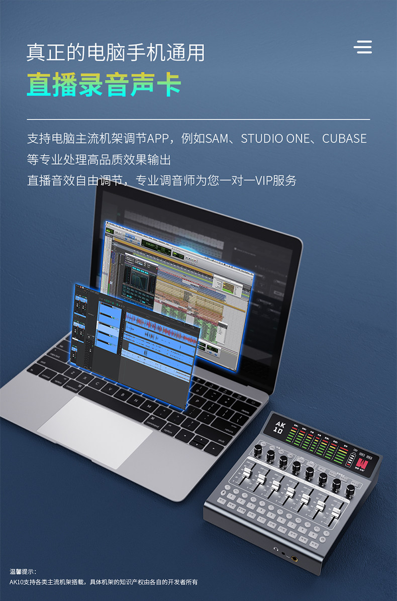 加来众科升级版AK10手机电脑专业直播唱歌设备专用声卡话筒全套装