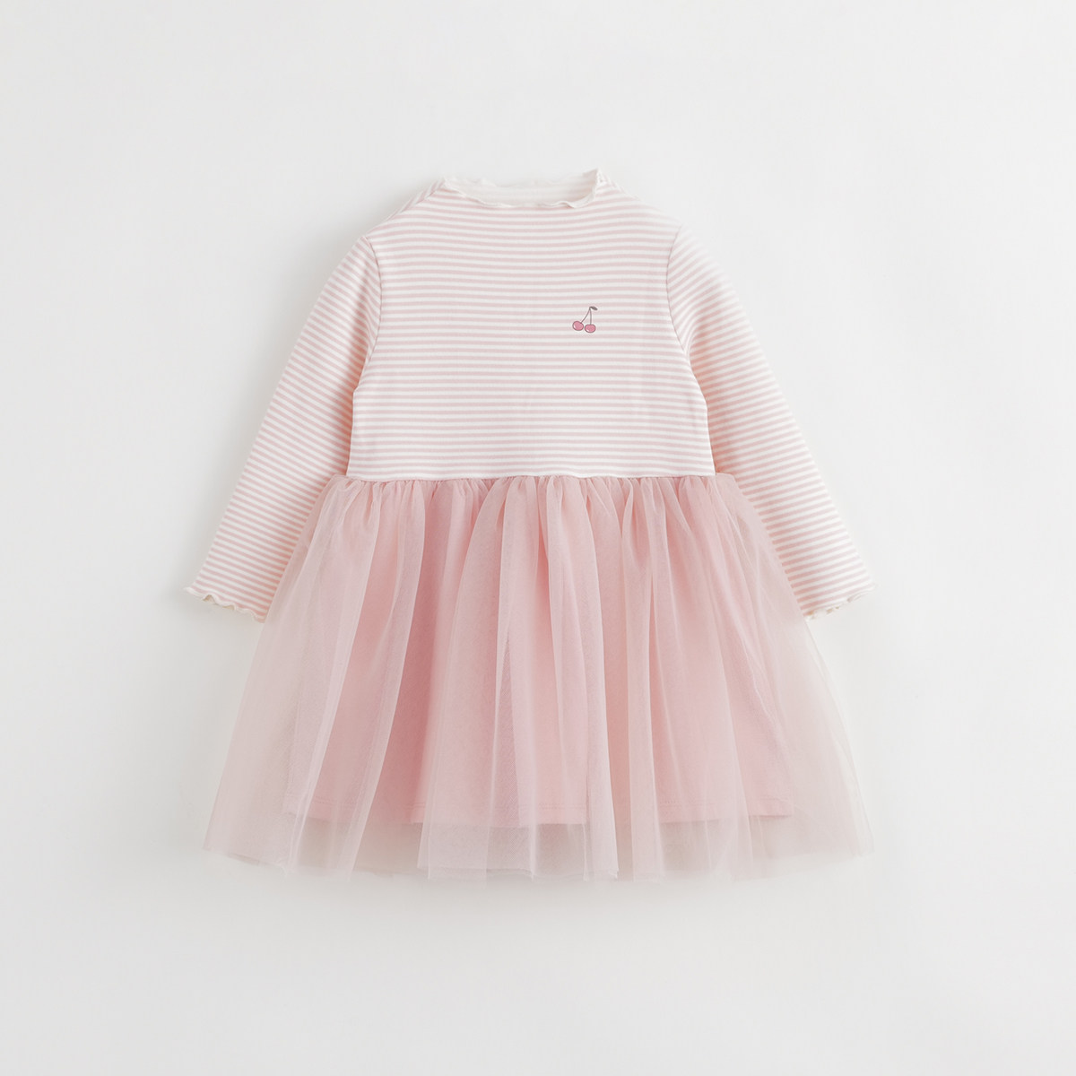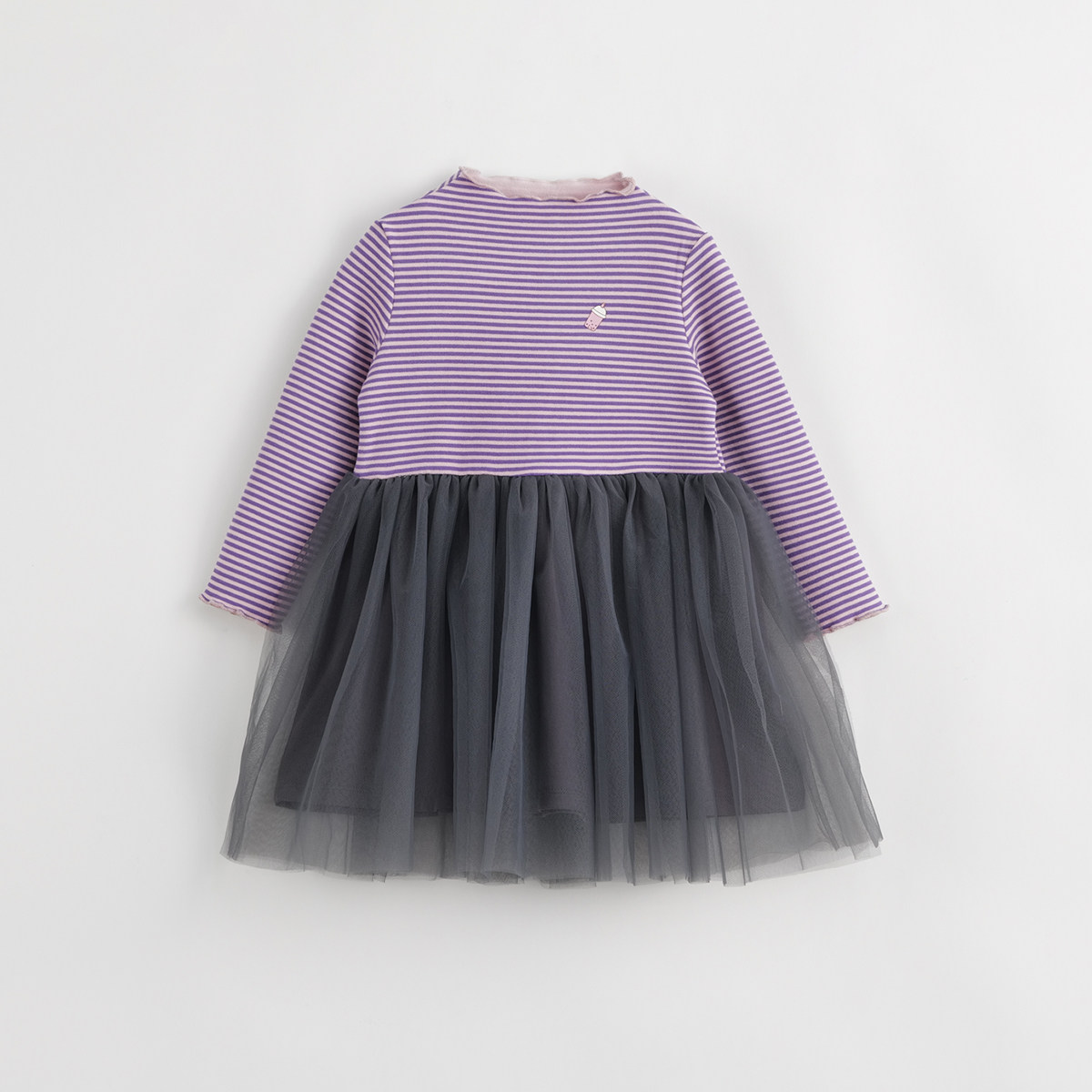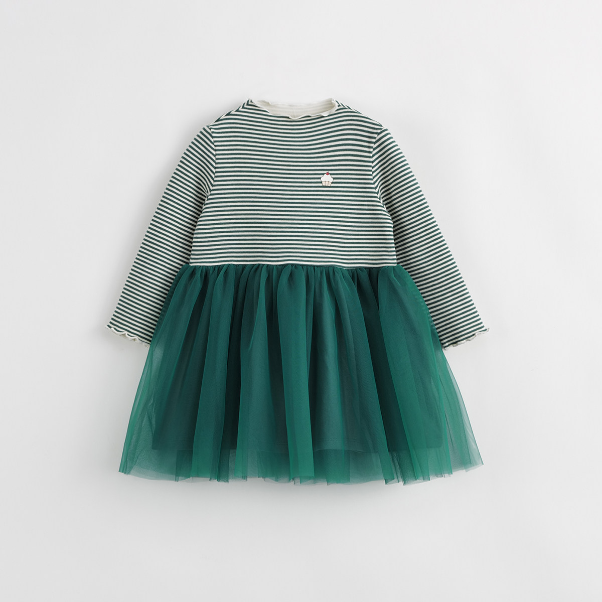 马克珍妮女童春秋款半高领条纹网纱连衣裙 儿童裙子231386