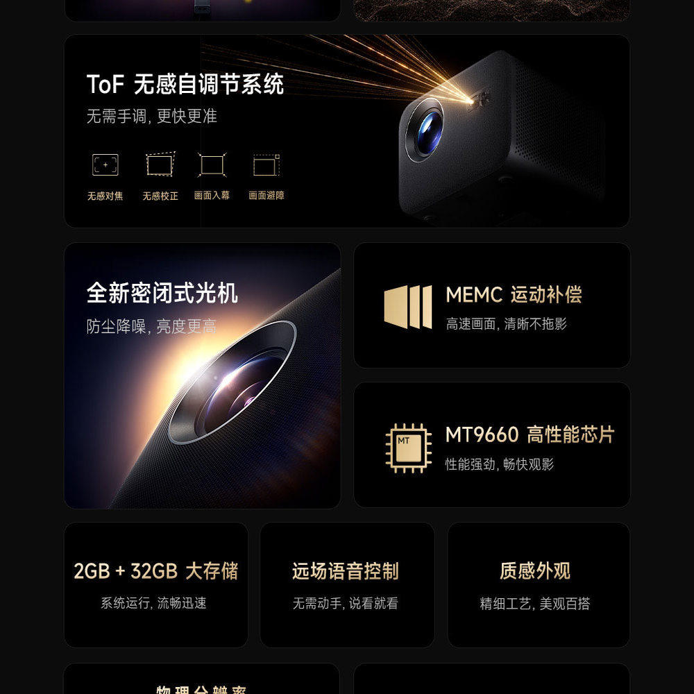小米投影仪Redmi4pro家用宿舍智能ToF家用自动对焦民宿卧室红米投影机手机投屏小爱AI语音1080P海外版国际用