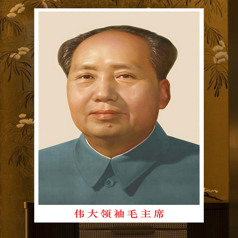 毛主席画像伟人照片自粘墙贴画客厅书房办公室玄关装饰墙画中堂画