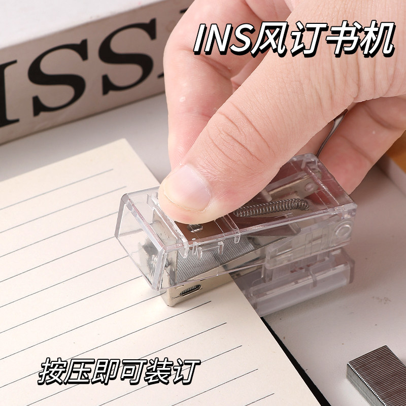 无印风透明迷你小号订书机学生用小巧省力便携办公装订书器定书机