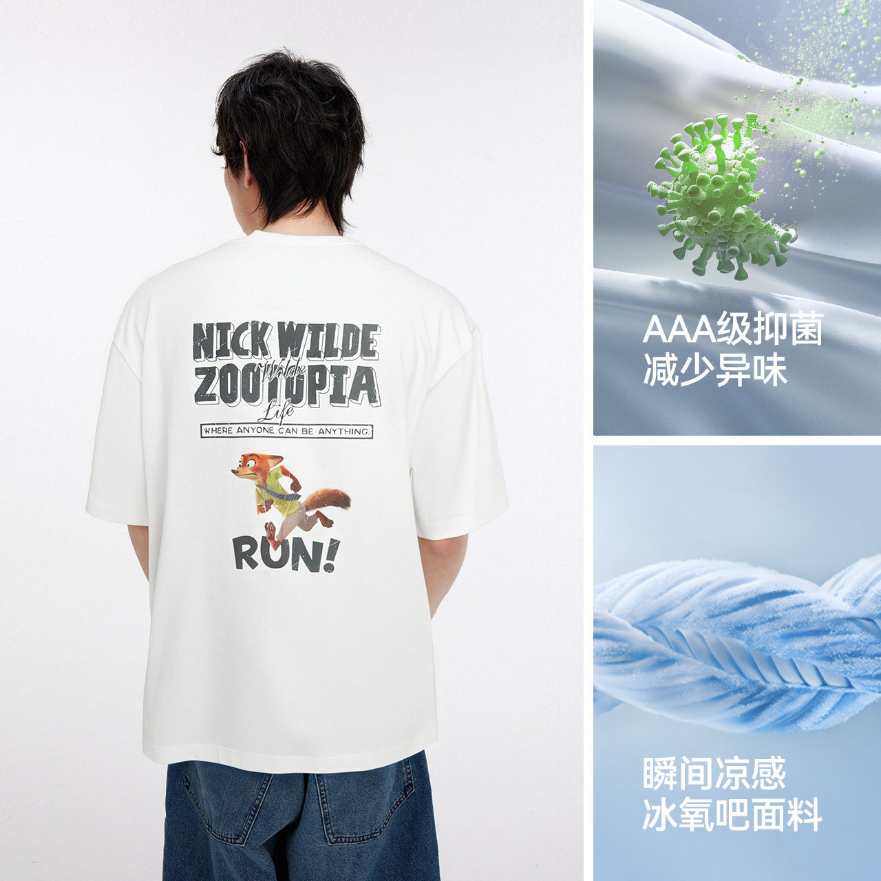 美式印花情侣T恤 疯狂动物城IP 凉感抑菌