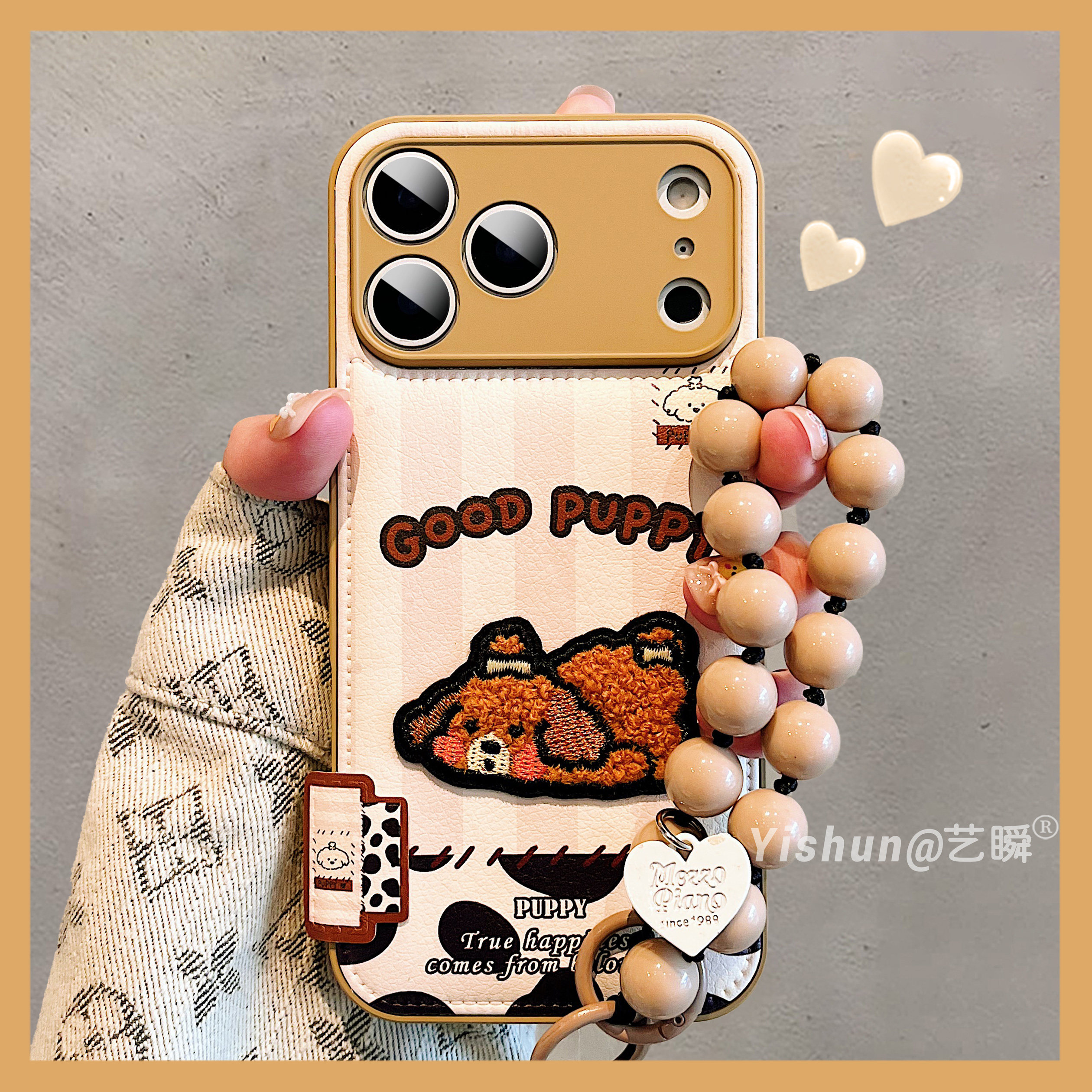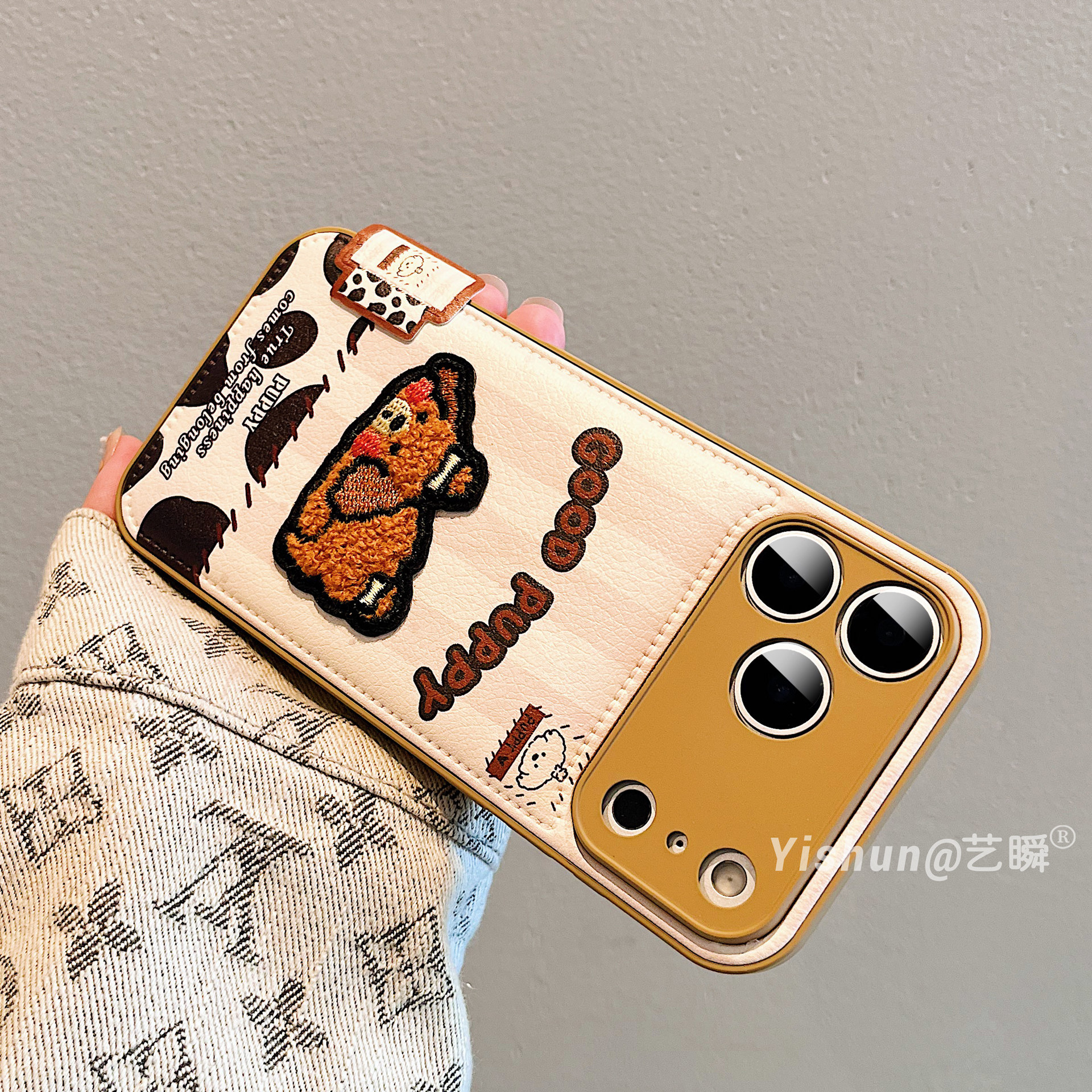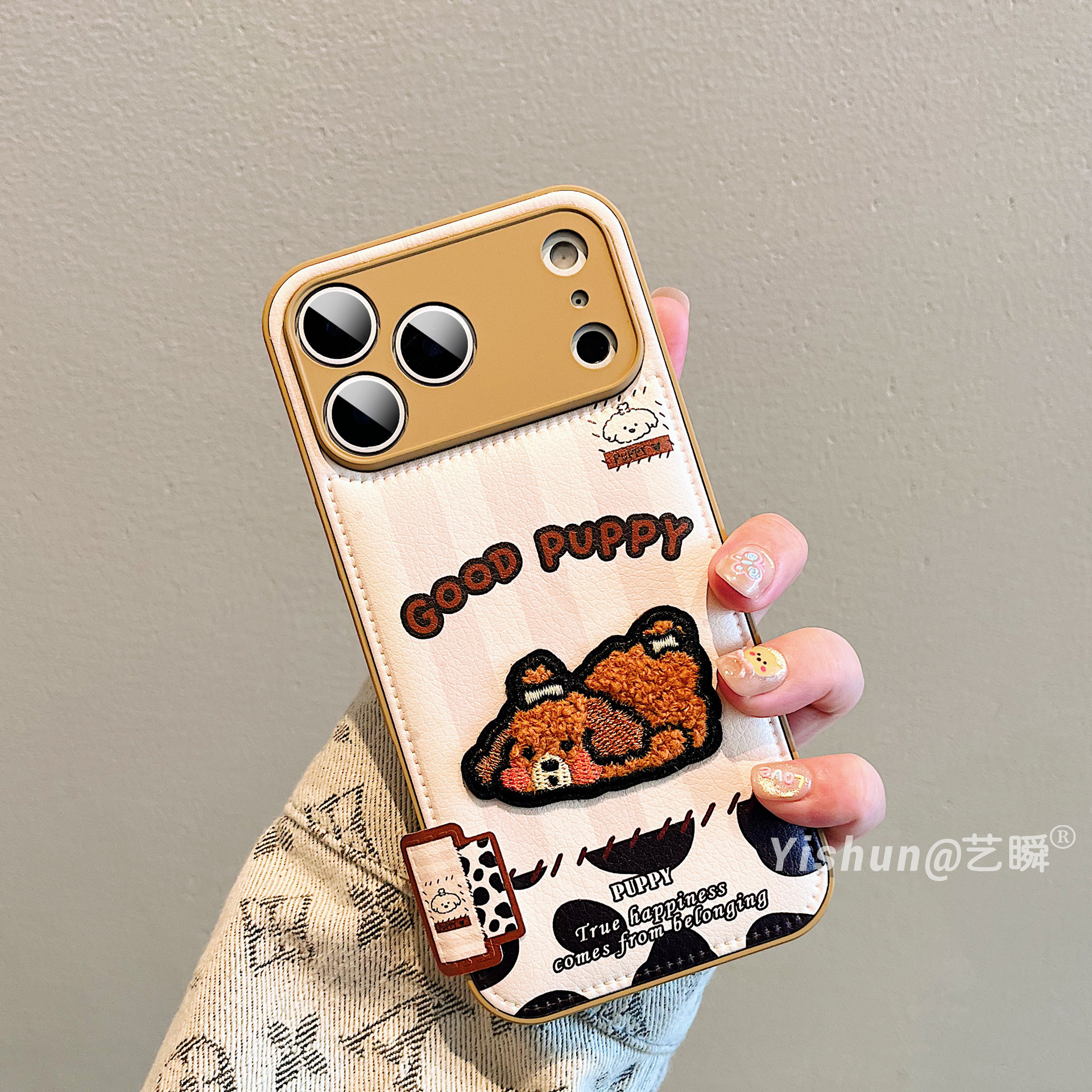 秋冬新款趣味呆萌趴趴毛绒小狗适用iPhone17ProMax手机壳苹果16pro皮质鼓包13全包镜头15pro可爱14pm女保护套