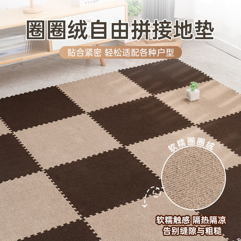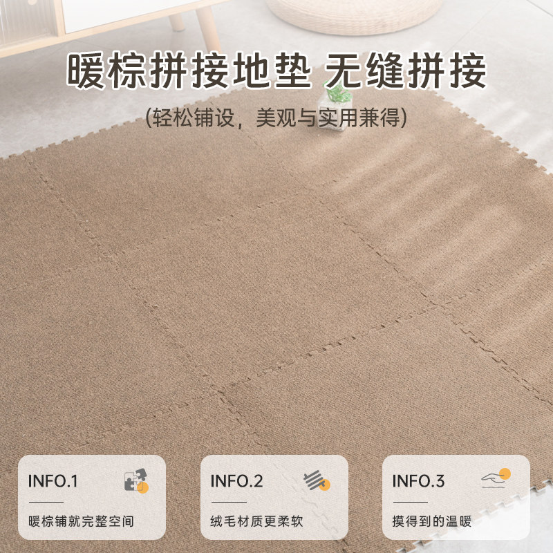 毛绒床边地毯卧室飘窗儿童拼接爬行垫房间可裁剪泡沫地垫客厅阳台