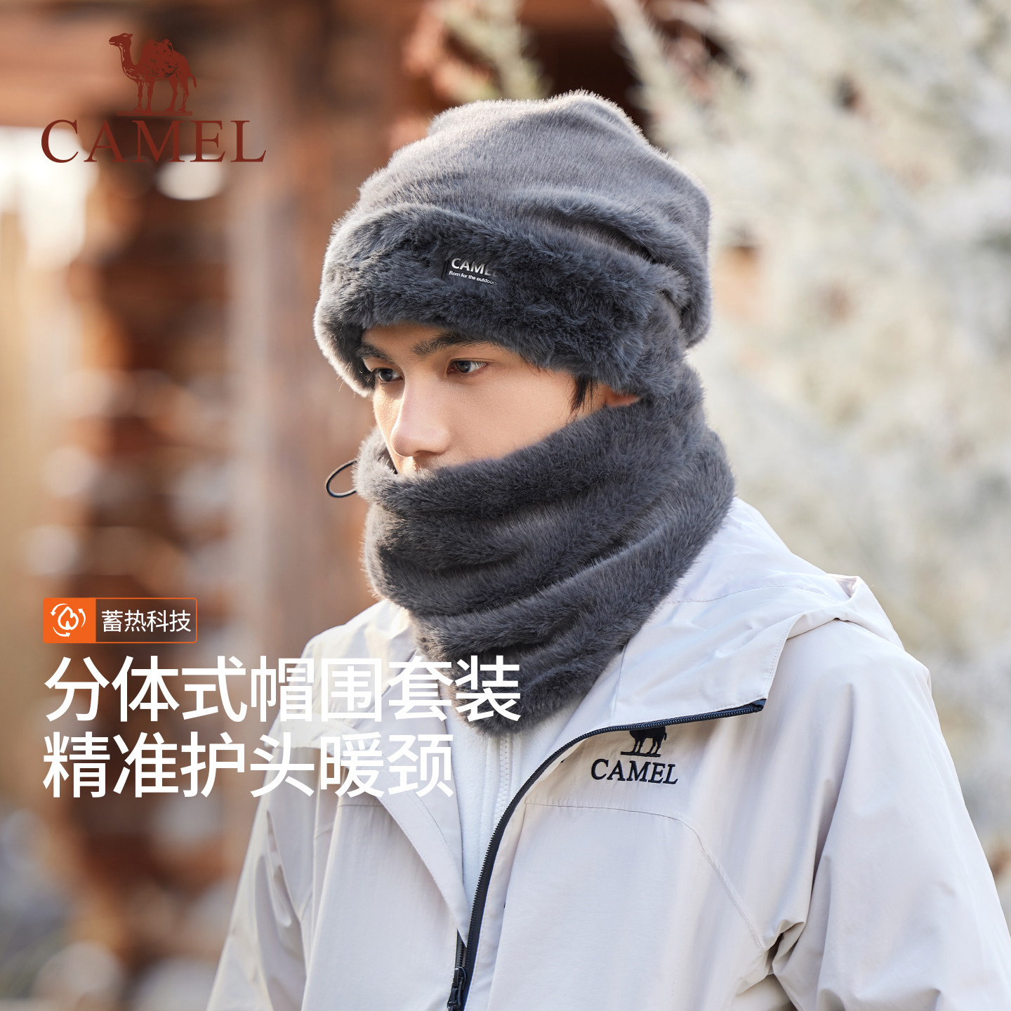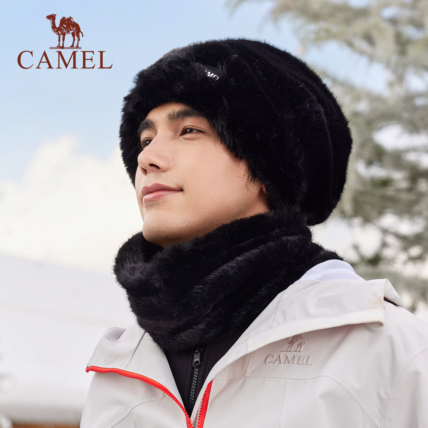 骆驼加绒保暖帽男帽子围脖两件套仿貂毛女加厚东北防风防寒包头帽