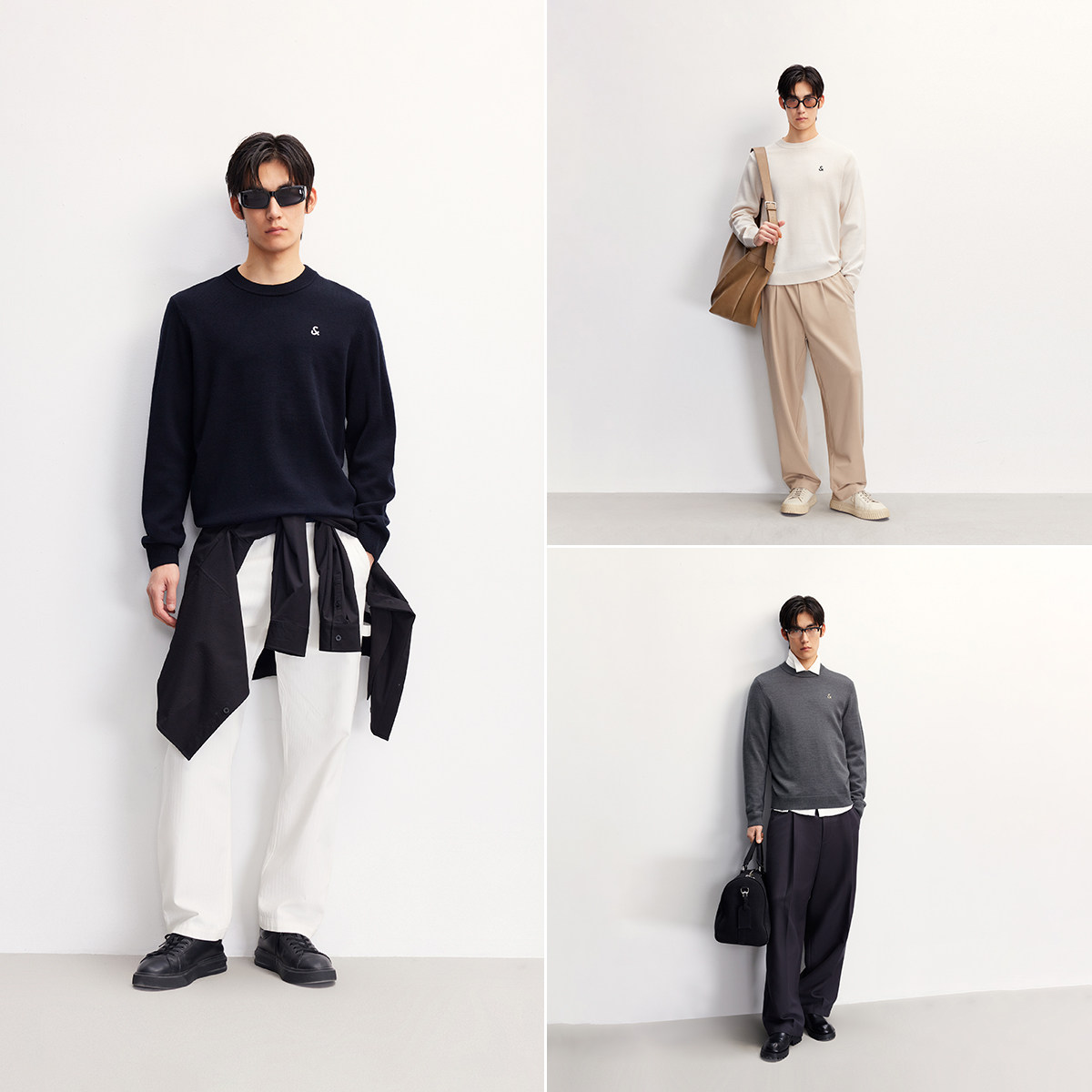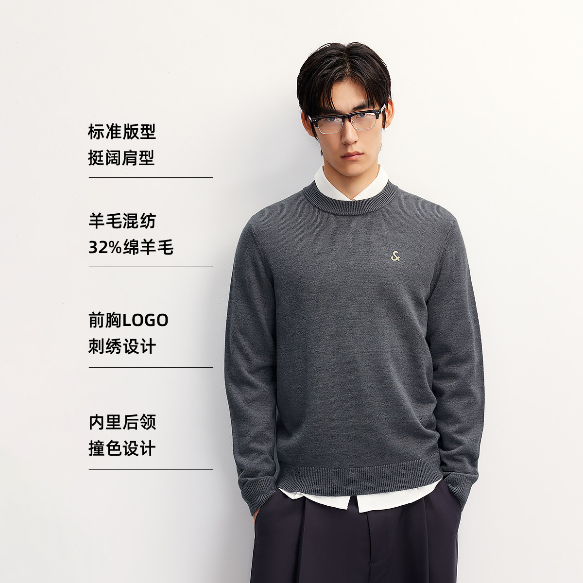 杰克琼斯奥特莱斯男装秋季针织衫毛衣纯色羊毛混纺可机洗长袖上衣