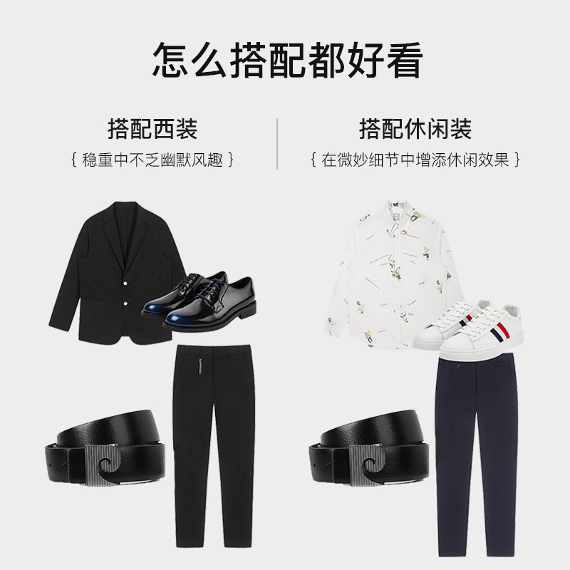 海澜之家男士针扣皮带真牛皮腰带年轻人商务百搭新款西装裤带正品