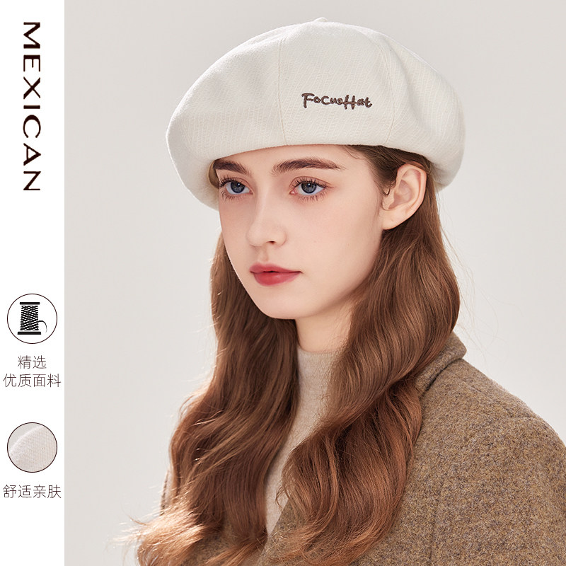稻草人贝雷帽女冬韩日系黑色英伦复古大头围艺术生画家帽子显脸小