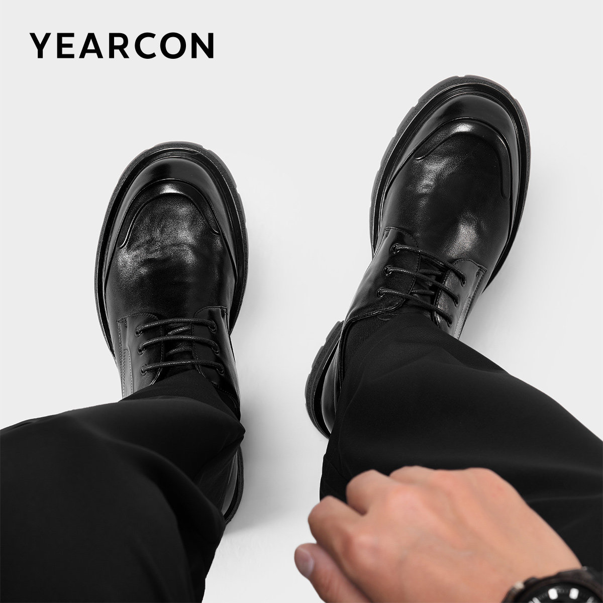意尔康男鞋2025新款真皮大头休闲皮鞋男士年轻商务正装英伦德比鞋