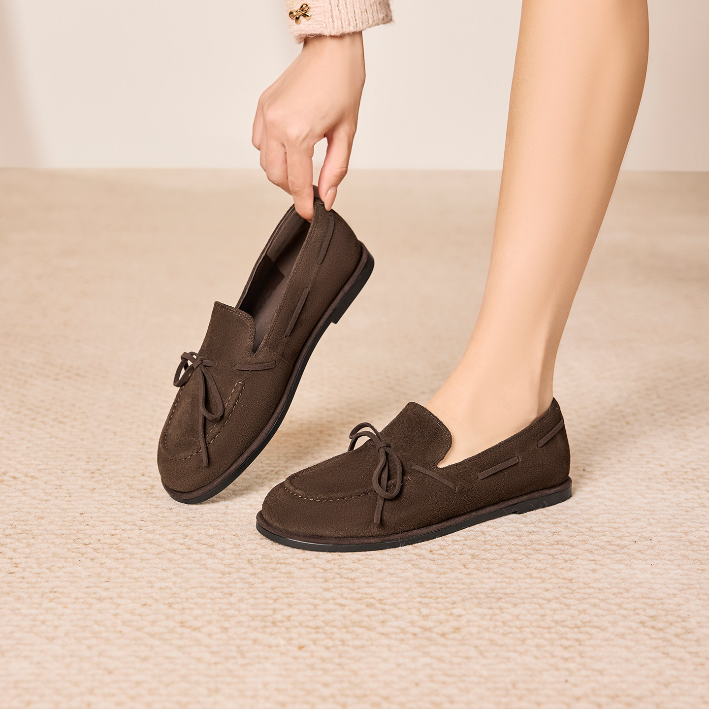 奥康 女鞋2025秋季乐福鞋真皮英伦风浅口单鞋柔软舒适通勤平底