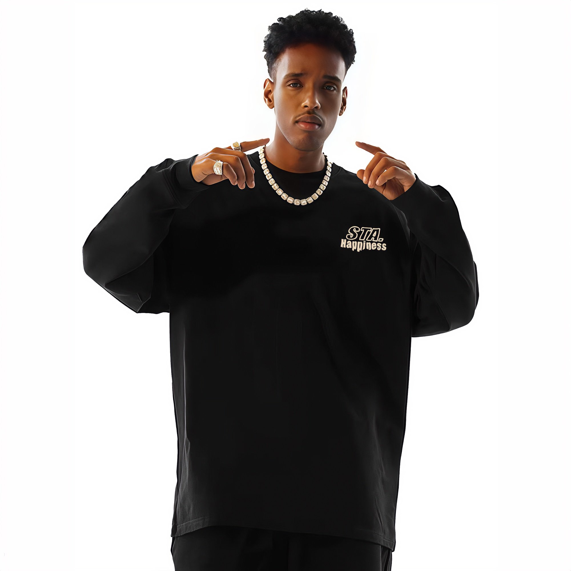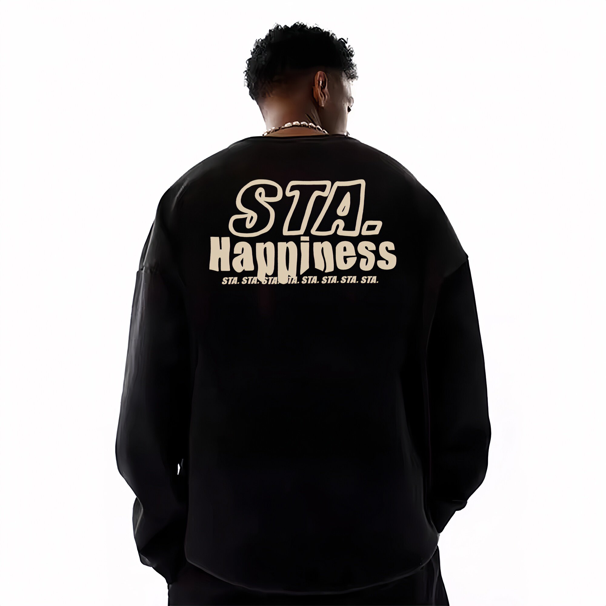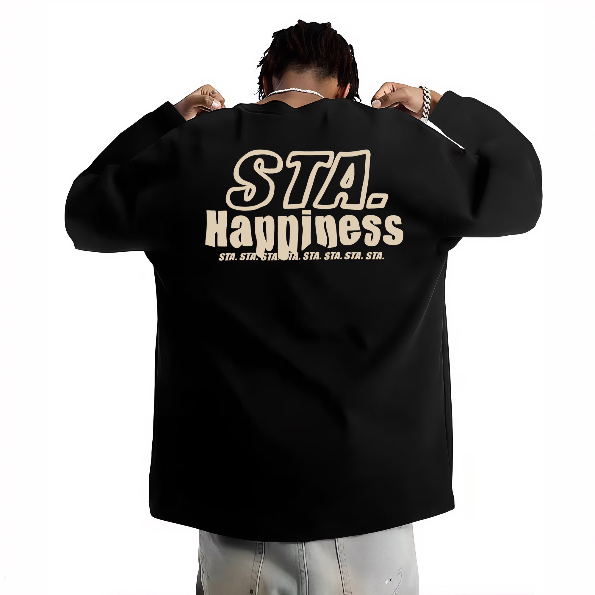 STA旗舰店美式潮牌长袖T恤男女街头重磅纯棉情侣宽松休闲圆领卫衣