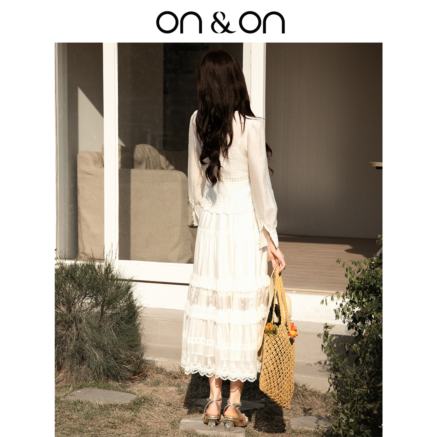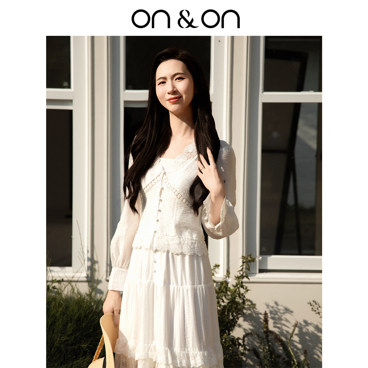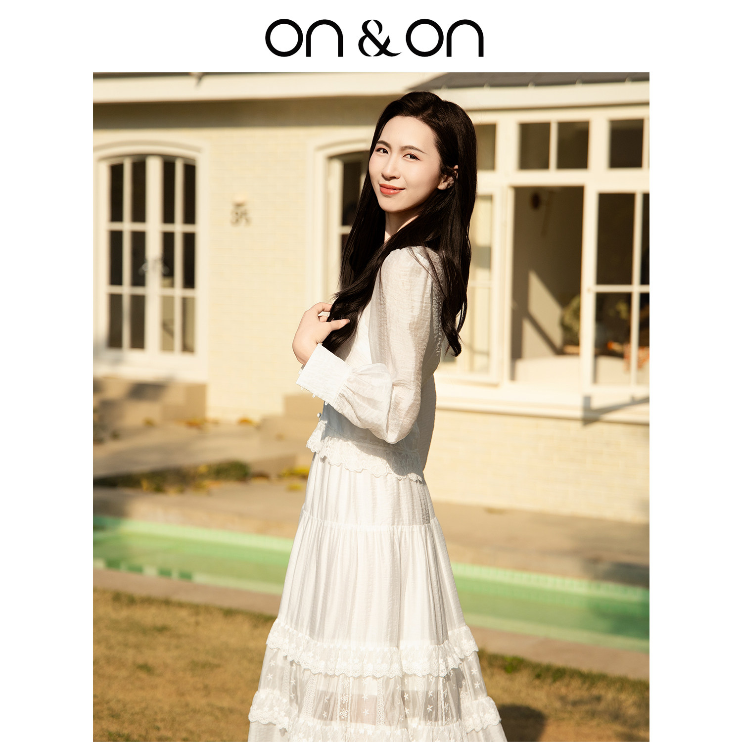 ON&ON/安乃安2025秋冬新款韩系时尚精致勾花镂空小衫+半裙套装女