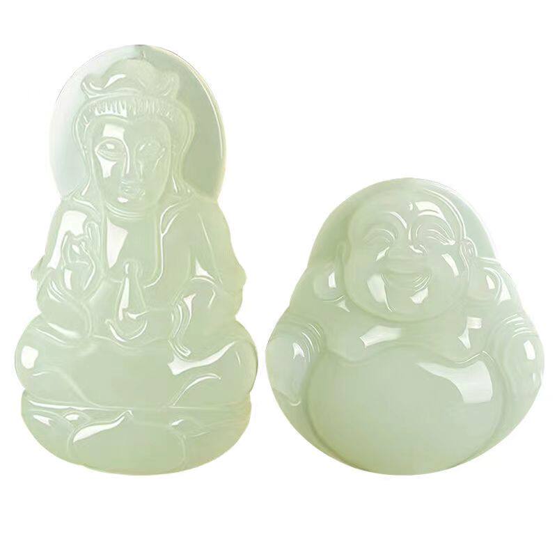 白玉观音笑佛吊坠玉石弥勒玉坠儿童项链弥勒佛观音菩萨玉佛羊脂玉