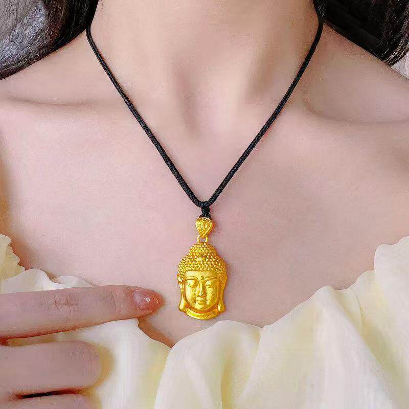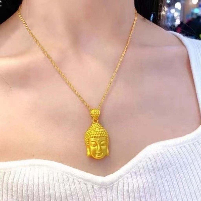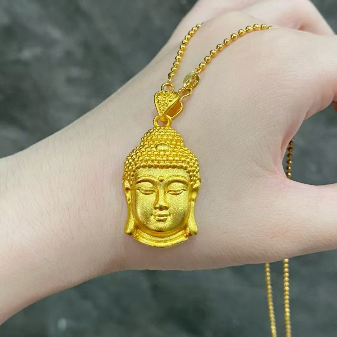 夏天项链吊坠女士男士男女佛头吊坠爆款铜镀金古法沙金佛头项链