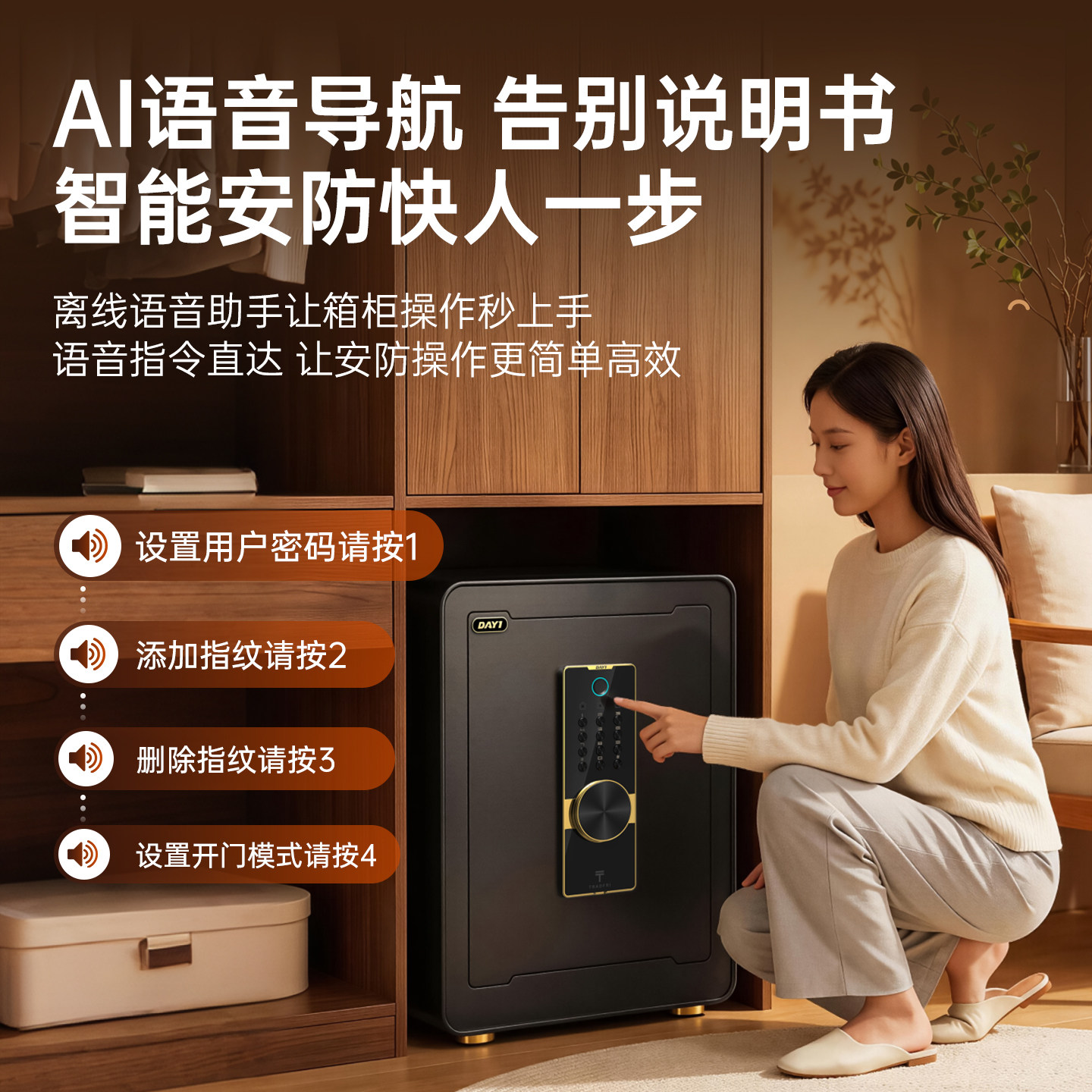 得力保险柜家用2026年新款小型家用防盗保险箱入衣柜指纹密码自动开门保管箱20/25cm全钢箱体首饰保险箱