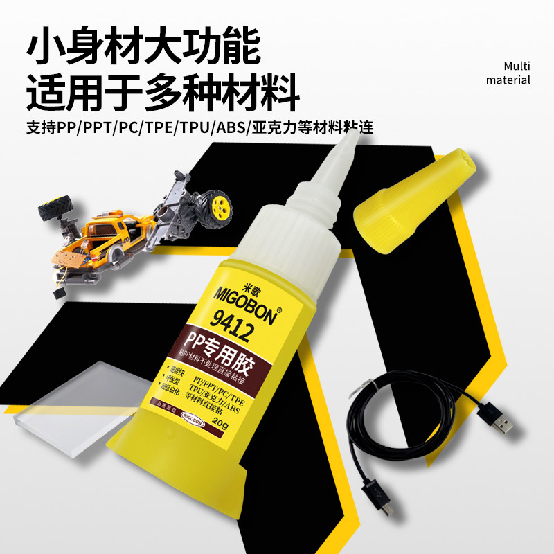 米歌9412塑料专用胶水PPT PC TPE TPU ABS 亚克力环保强力瞬间胶粘手办模型汽车保险杠修复修补多功能粘合剂