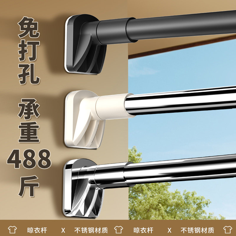 免打孔伸缩晾衣杆阳台固定晾衣架窗帘杆衣柜卫生间撑杆升缩挂杆子