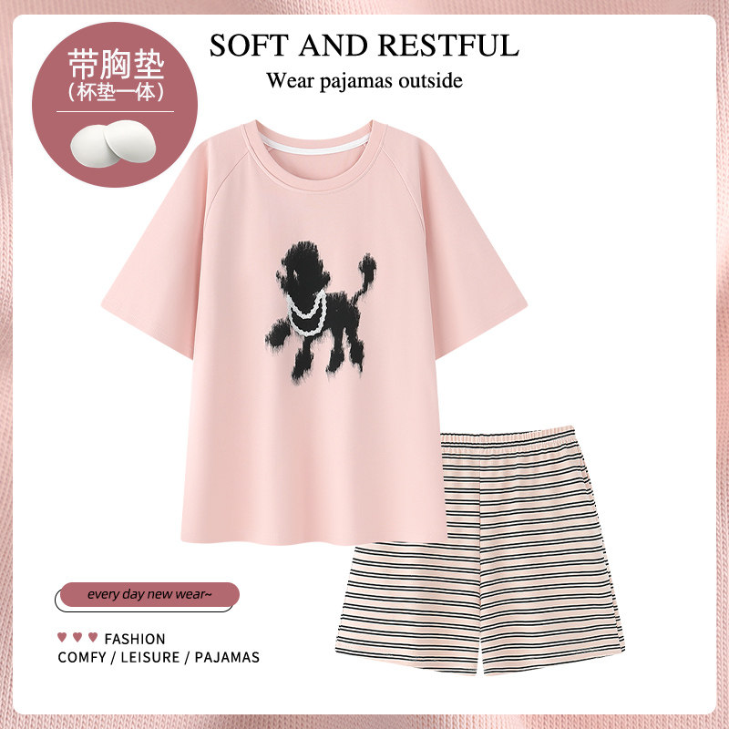 末里末【带胸垫】2026夏季纯棉短袖慵懒风可外穿睡衣女条纹家居服