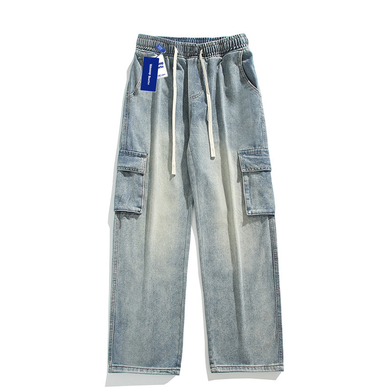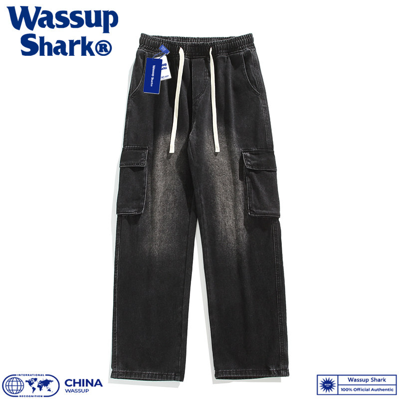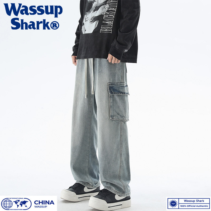 Wassup Shark美式水洗工装牛仔裤男秋季休闲大口袋宽松直筒阔腿裤