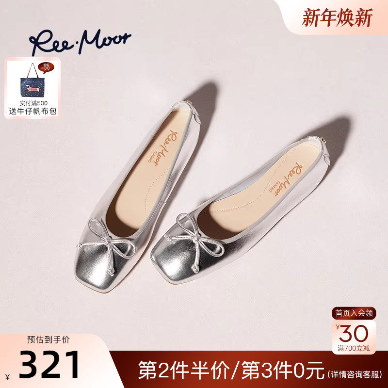 REEMOOR睿慕2025秋季新款蝴蝶结蛋卷鞋舒适软底浅口平底单鞋女