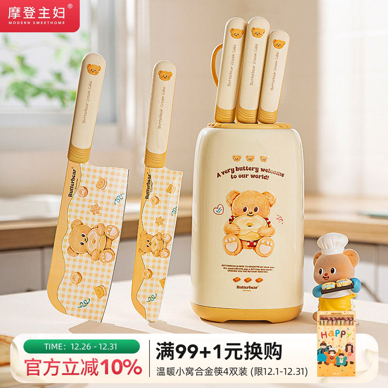 【摩登主妇&黄油小熊】婴儿辅食刀具套装厨房工具菜刀板组合厨具