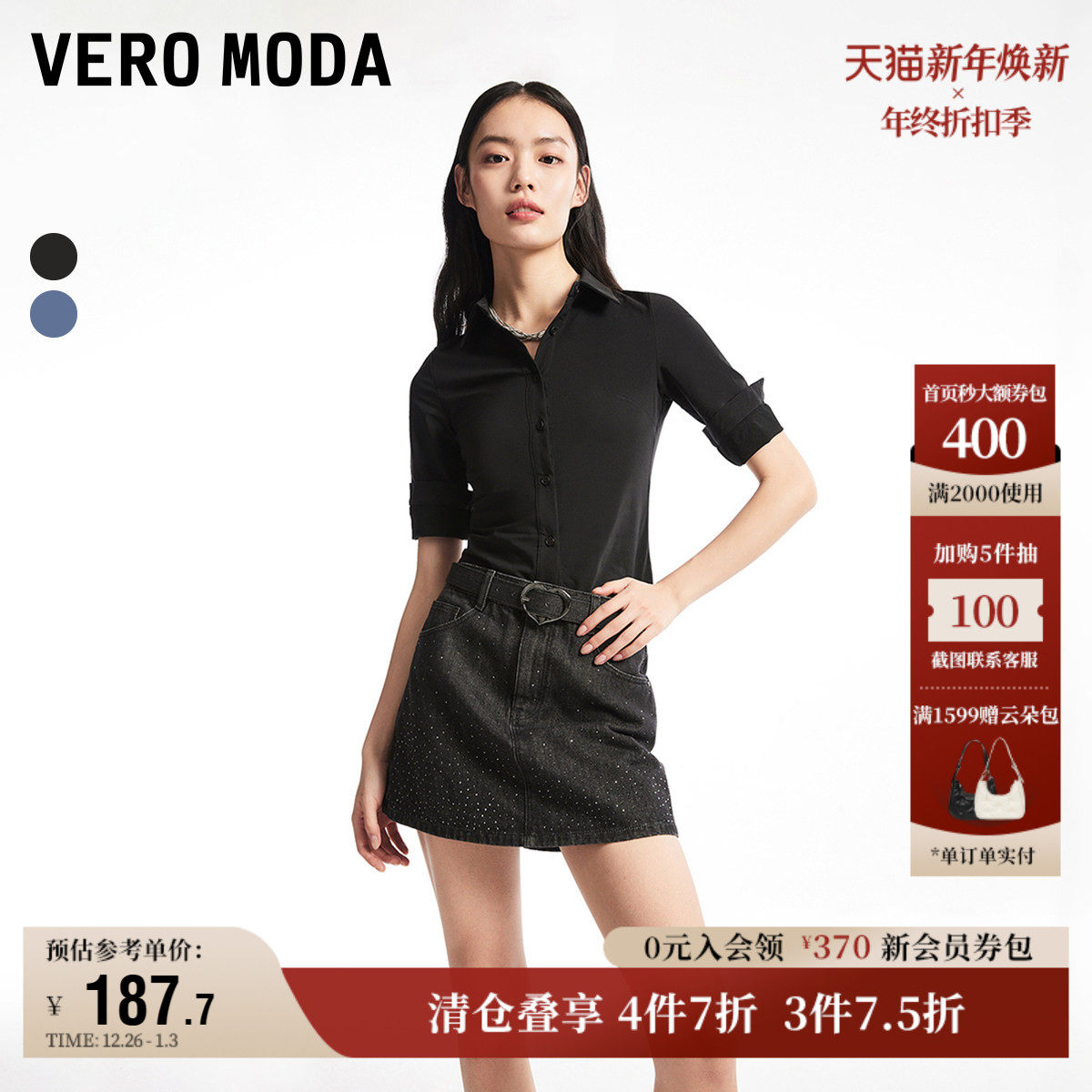 Vero Moda奥莱牛仔短裤女秋冬新款街头风高腰水钻气质裙裤流行