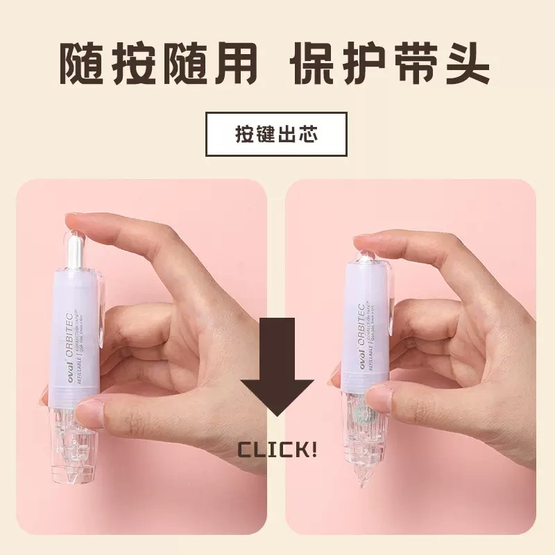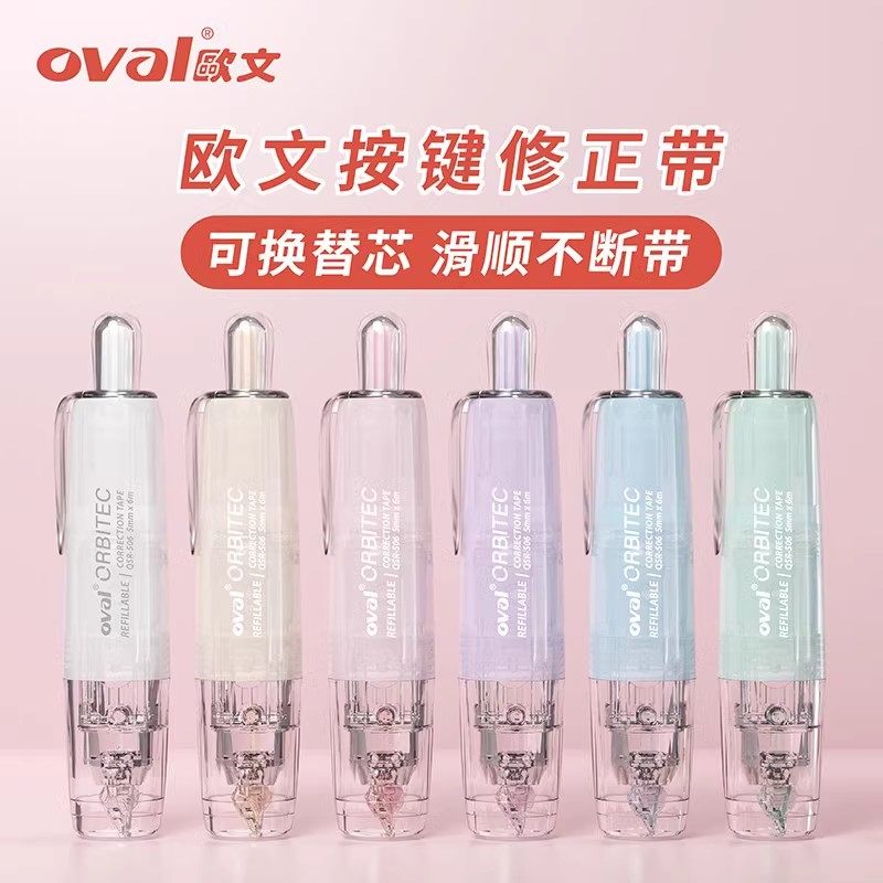 雾感新色 台湾OVAL欧文修正带高颜值雾面透明可换替芯旋转头按动型涂改带6m学生用笔式改正带不易断进口替芯