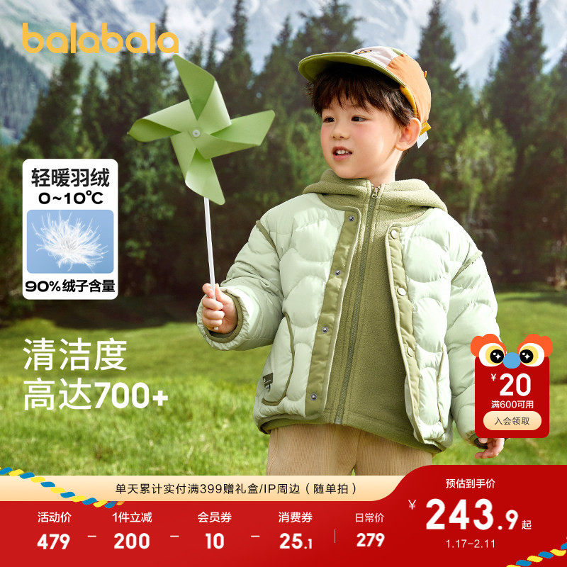 巴拉巴拉童装儿童羽绒服男童女童冬宝宝外套轻薄摇粒绒两件套上衣