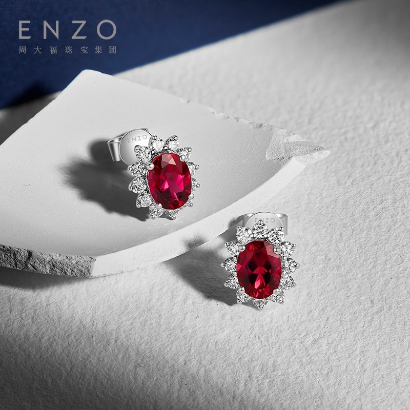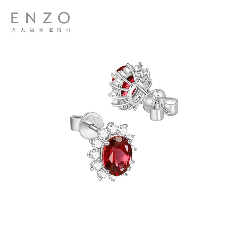 ENZO「经典彩宝」系列18K金碧玺钻石耳钉女EZV4840节日礼物