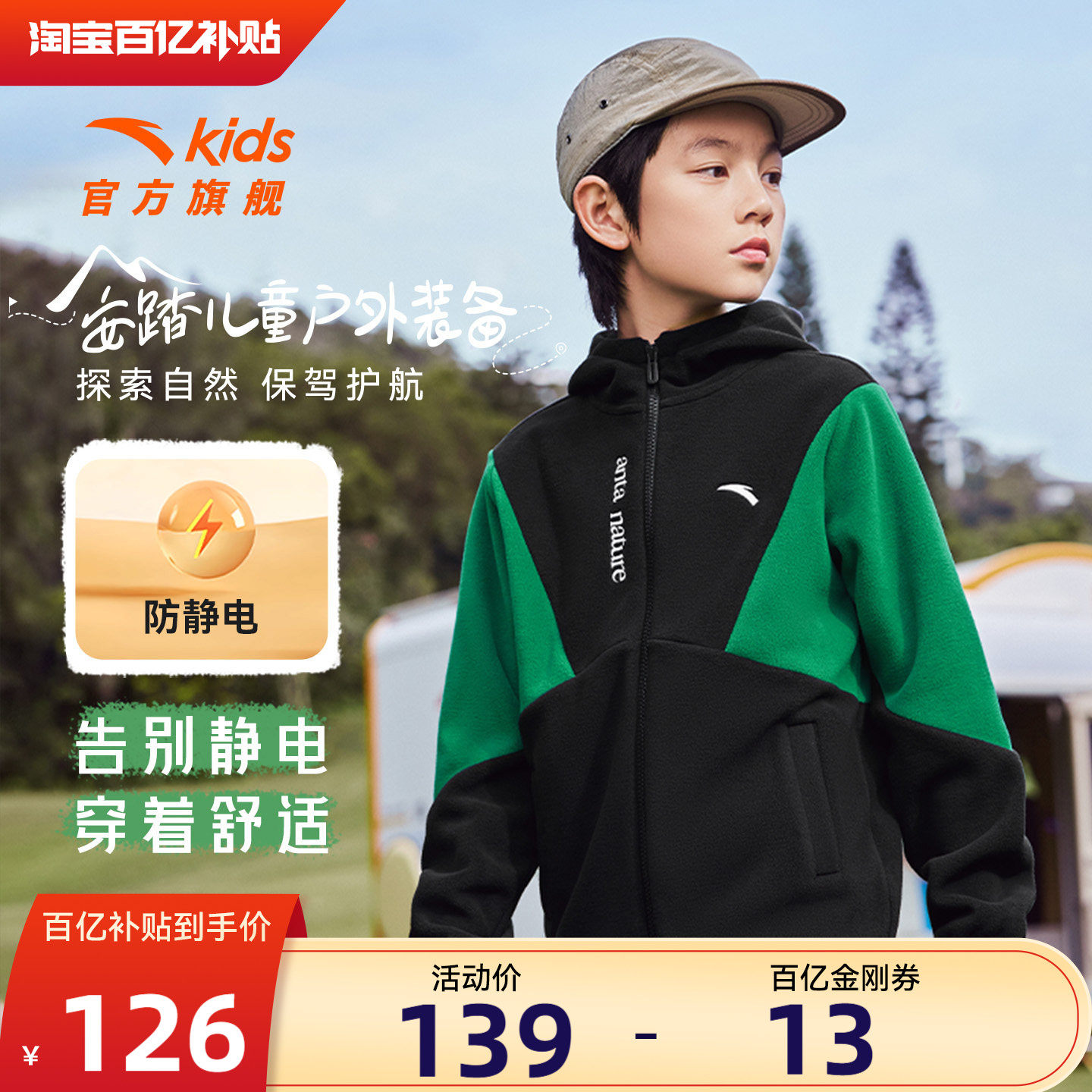 安踏儿童男童保暖摇粒绒外套2025秋冬新款儿童抗静电女孩洋气衣服