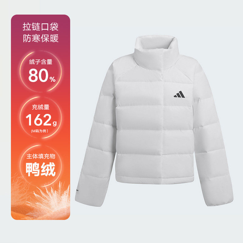adidas阿迪达斯白色短款羽绒服鸭绒年女高领保暖冬装外套KH3977
