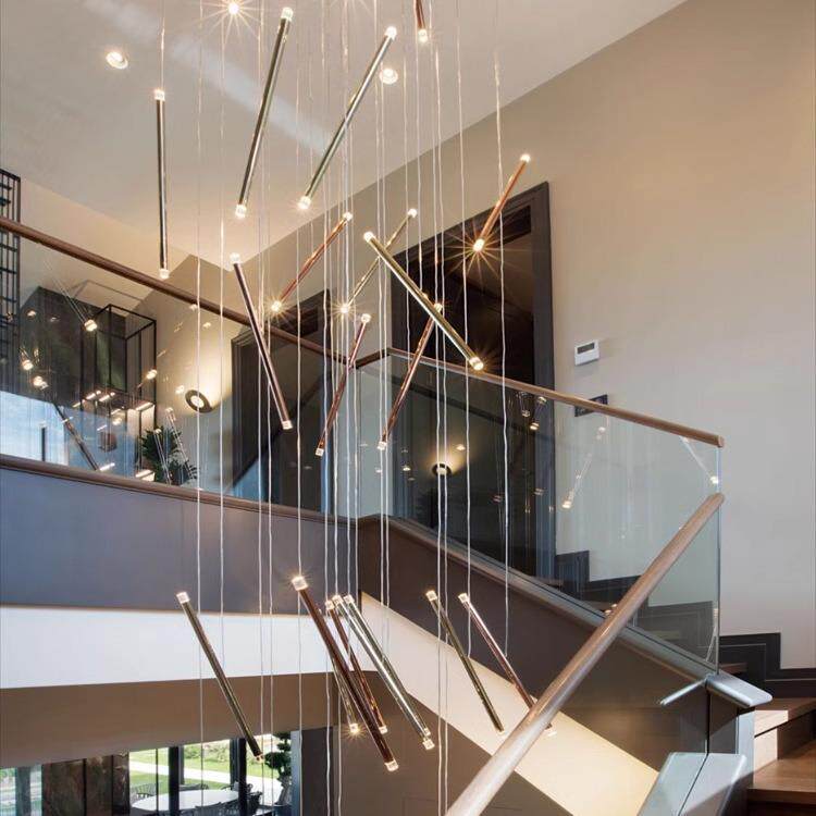 极简复式楼客厅大吊灯轻奢现代简约创意楼梯间loft跃层楼梯长吊灯