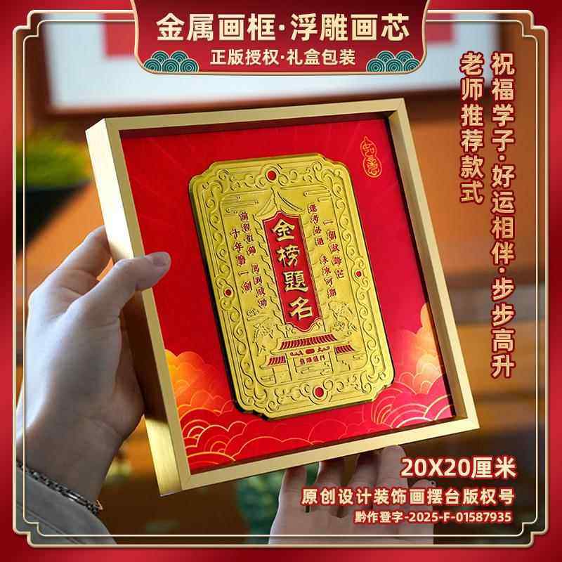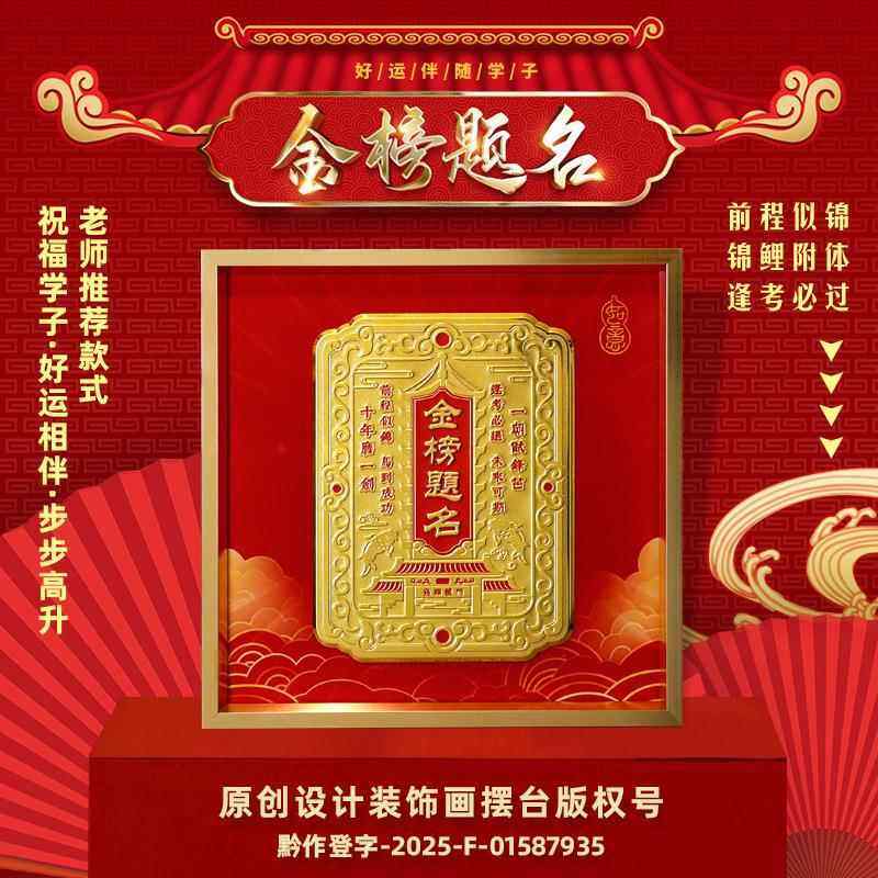 挂画摆台中高考摆件鱼跃龙门装饰画红色画框书房金榜题名摆件