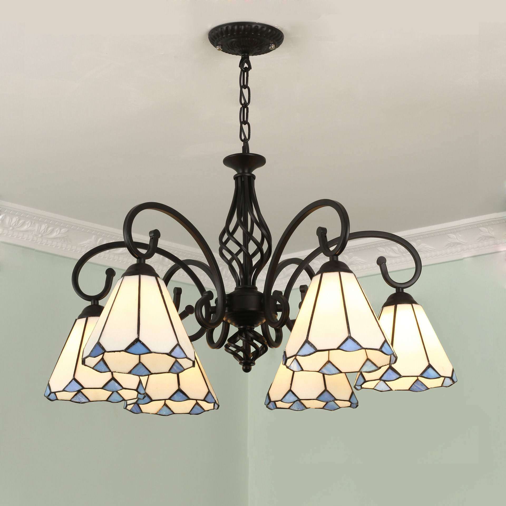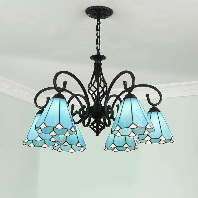 蒂凡尼DIY艺术吊灯LED黑色欧式铁艺吊灯客厅灯美式乡村卧室餐厅灯