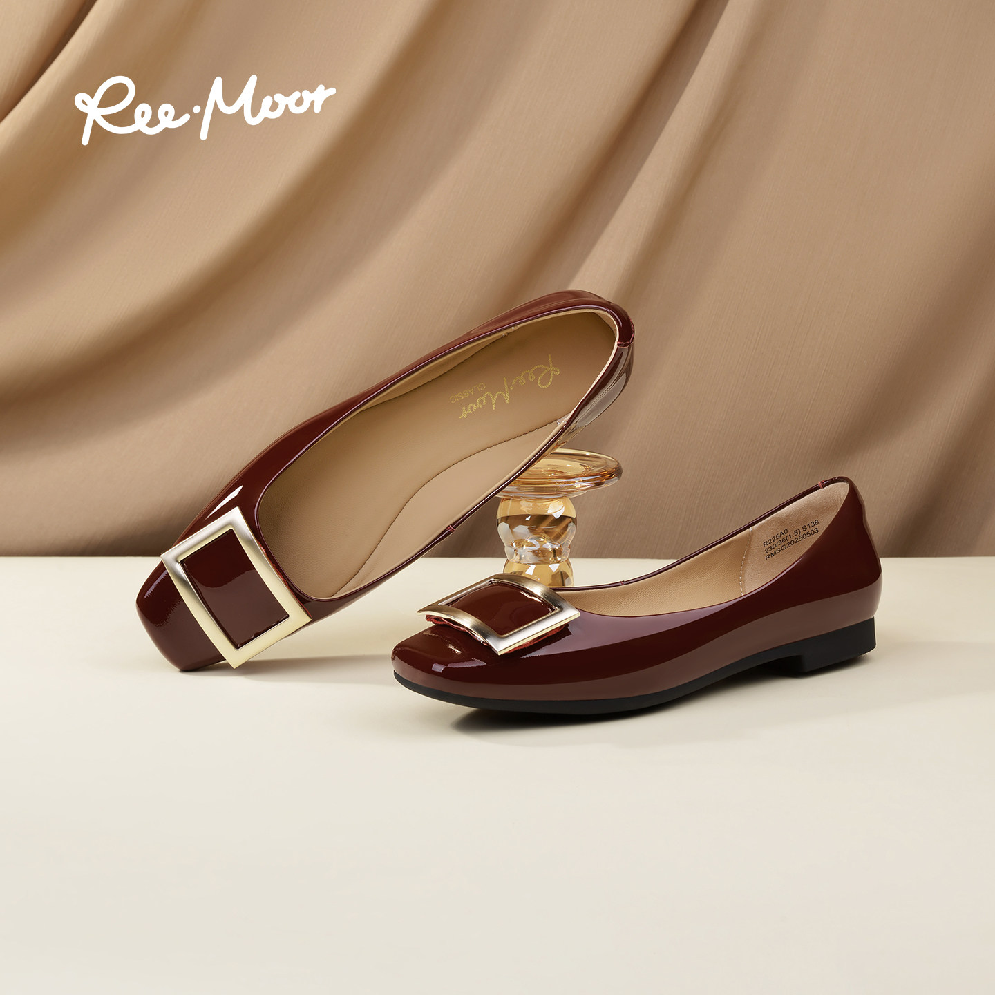 REEMOOR睿慕2025秋季新款法式复古方头浅口单鞋时尚平底鞋女鞋