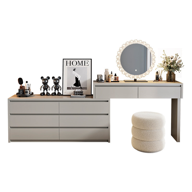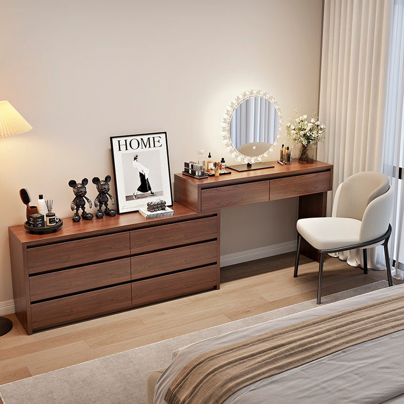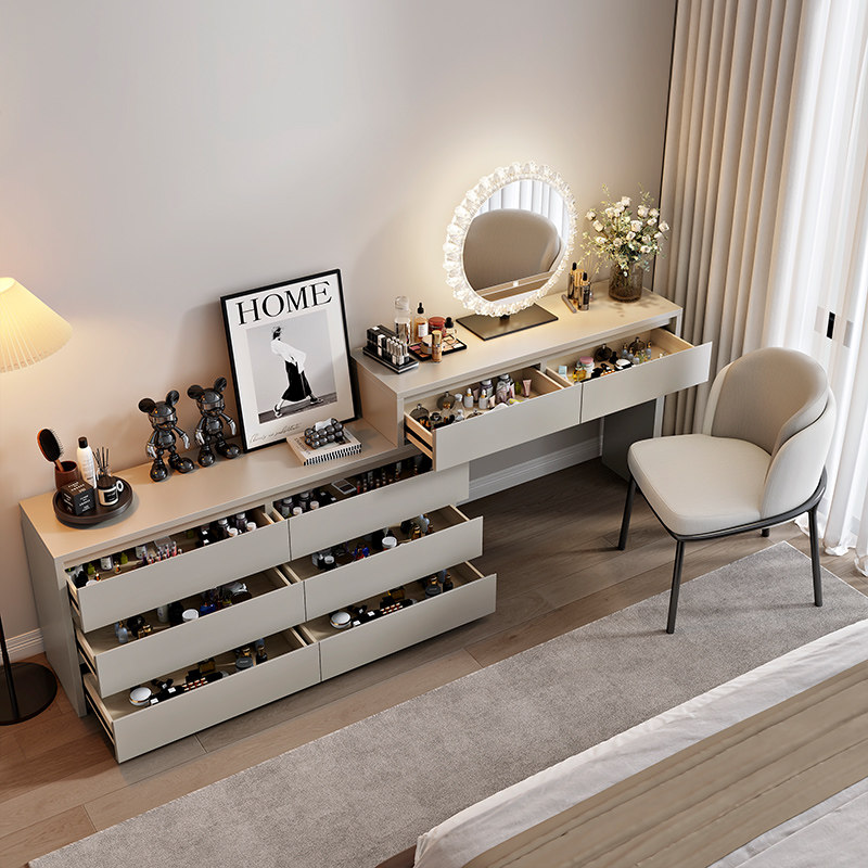 2025新款原木风梳妆台现代简约卧室斗柜一体化妆桌床头柜小型奶油