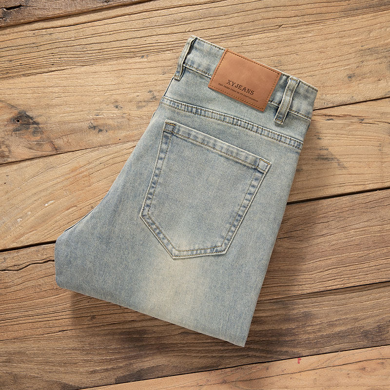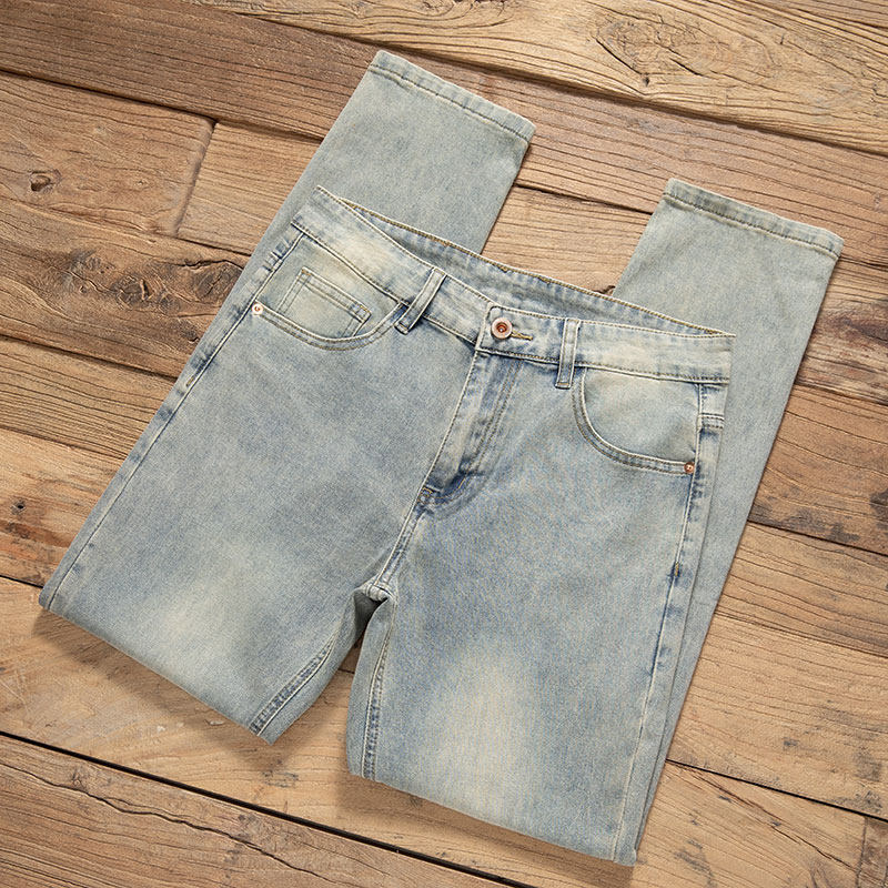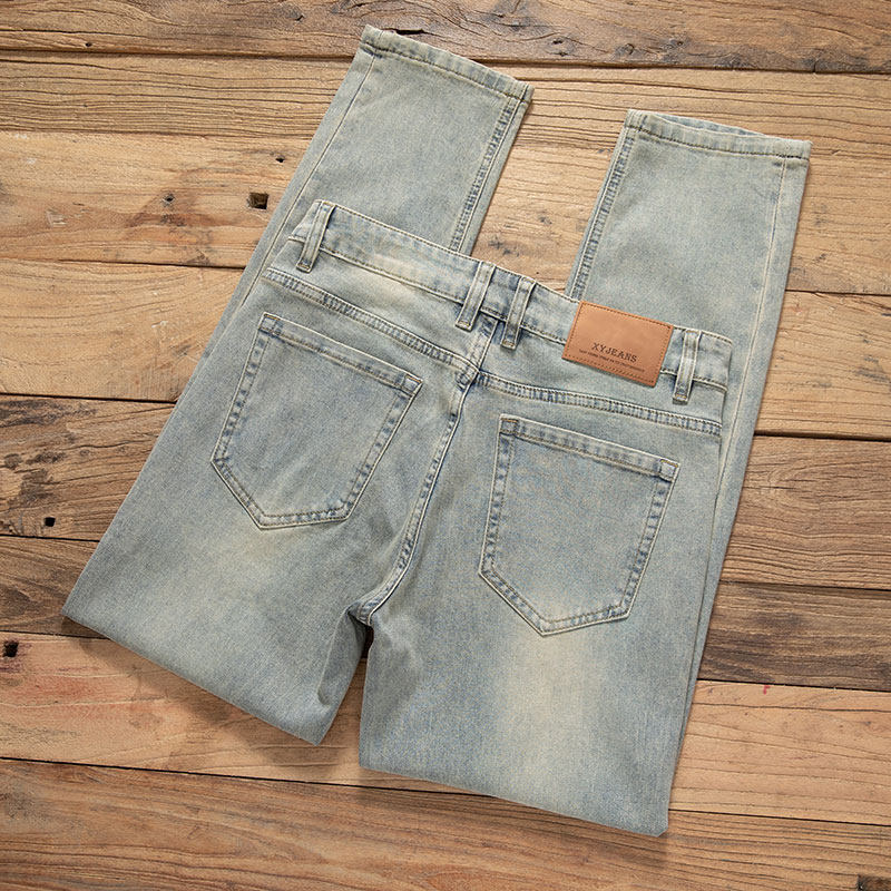 外贸品质欧货男装2025秋冬厚款复古牛仔裤男士百搭弹力修身小脚裤
