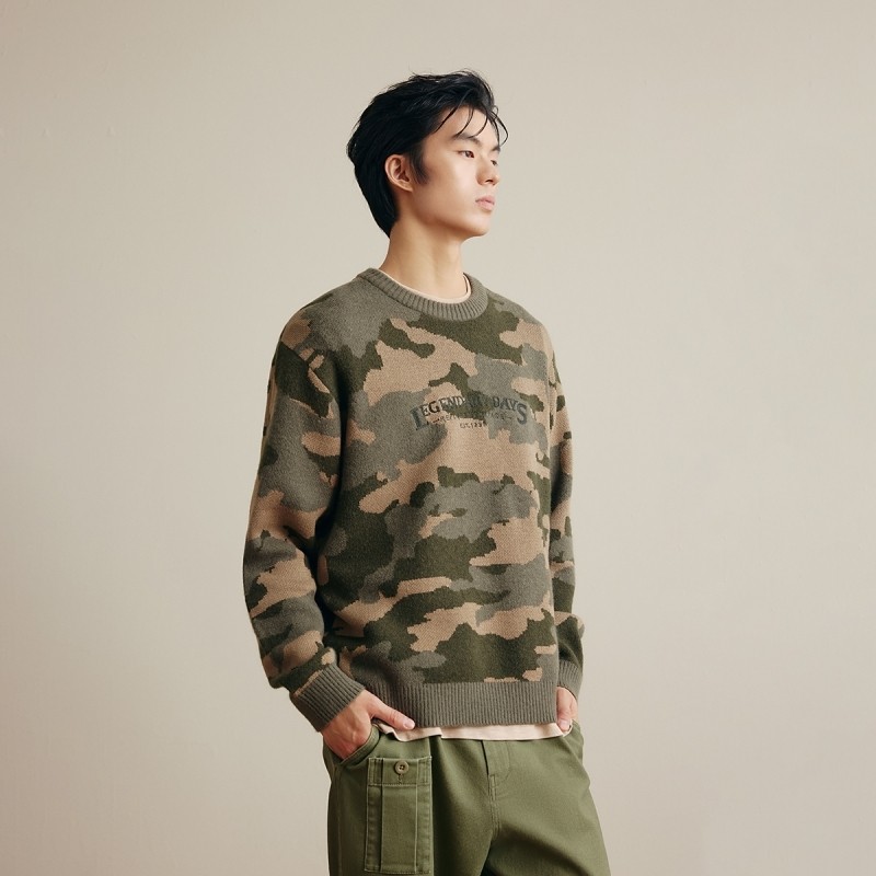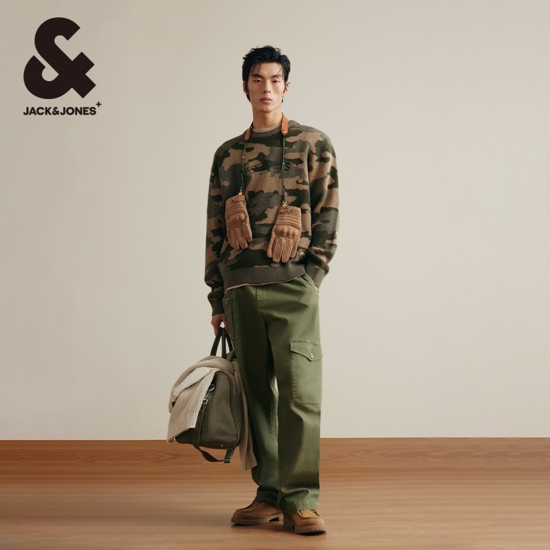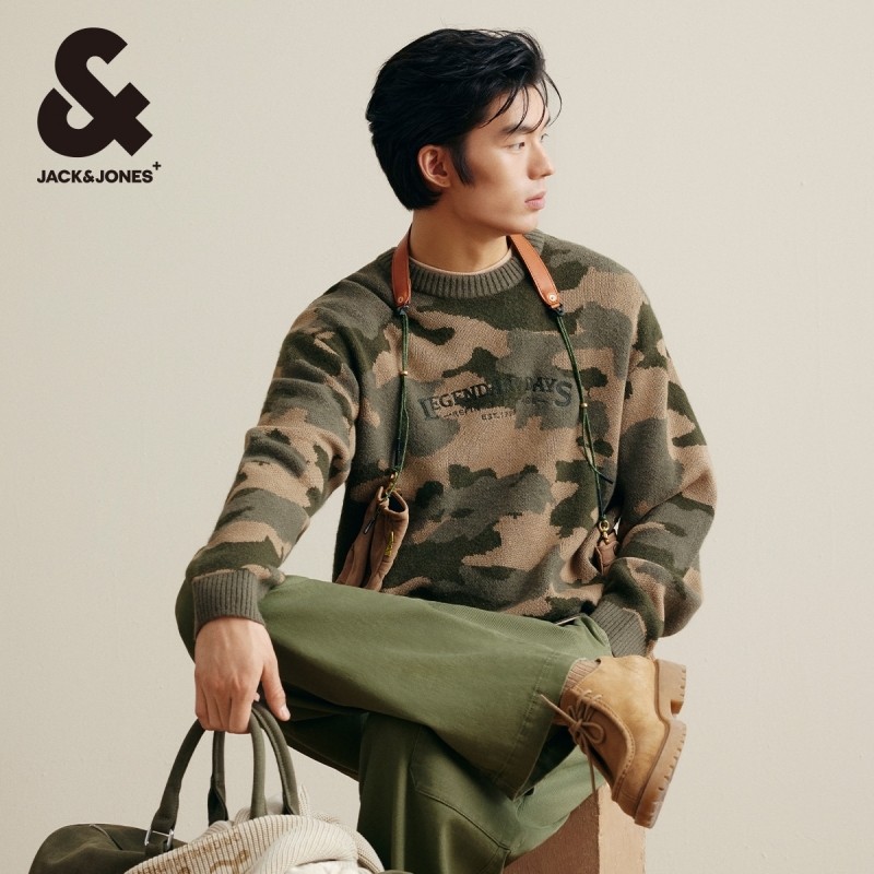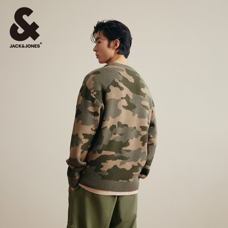 杰克琼斯冬季新款迷彩花纹宽松圆领毛衣针织衫男装