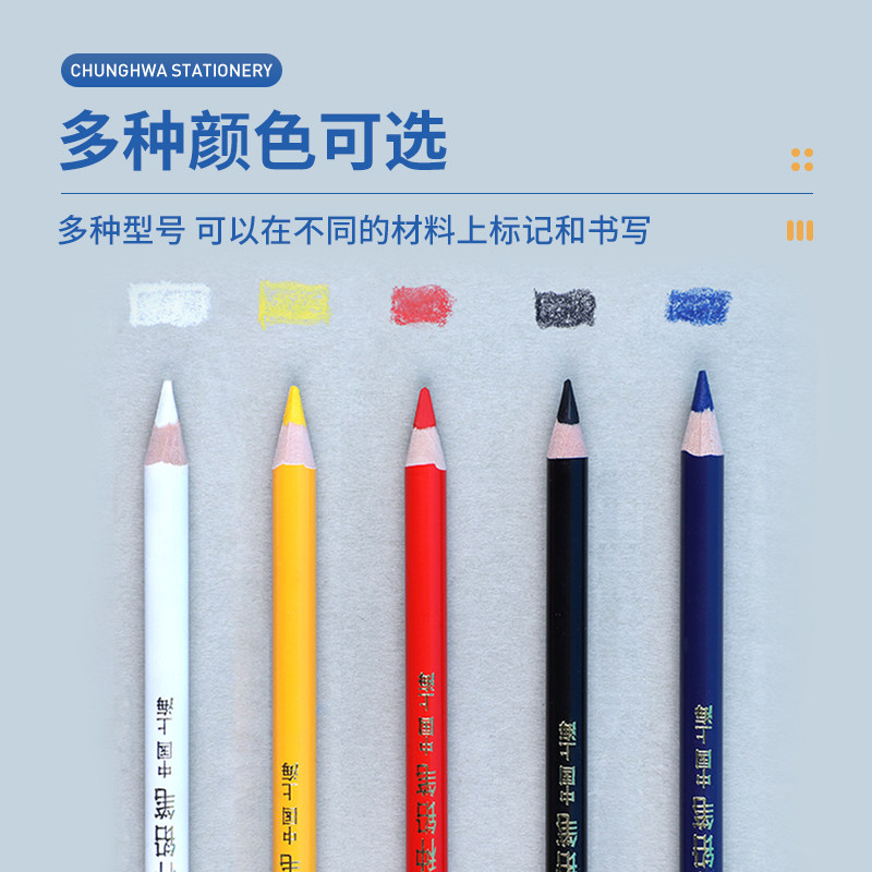 中华特种铅笔化妆眉笔536木工专用白色铅笔标记划线电工定位红色铅笔玻璃木材油性彩色彩铅黄色蓝色定位蜡笔