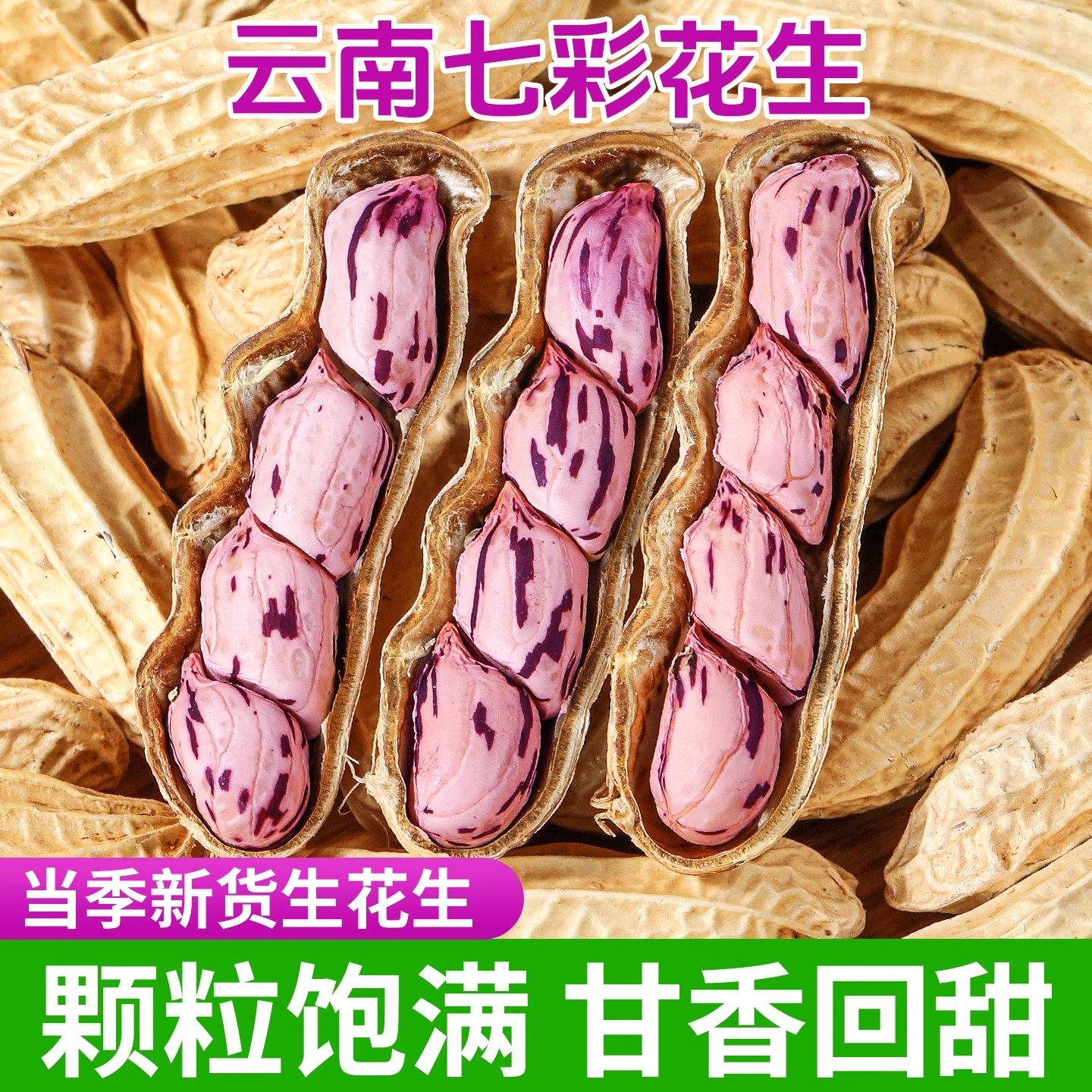 云南七彩花生2025新货晒干原味带壳生花生休闲零食坚果健康铁锅
